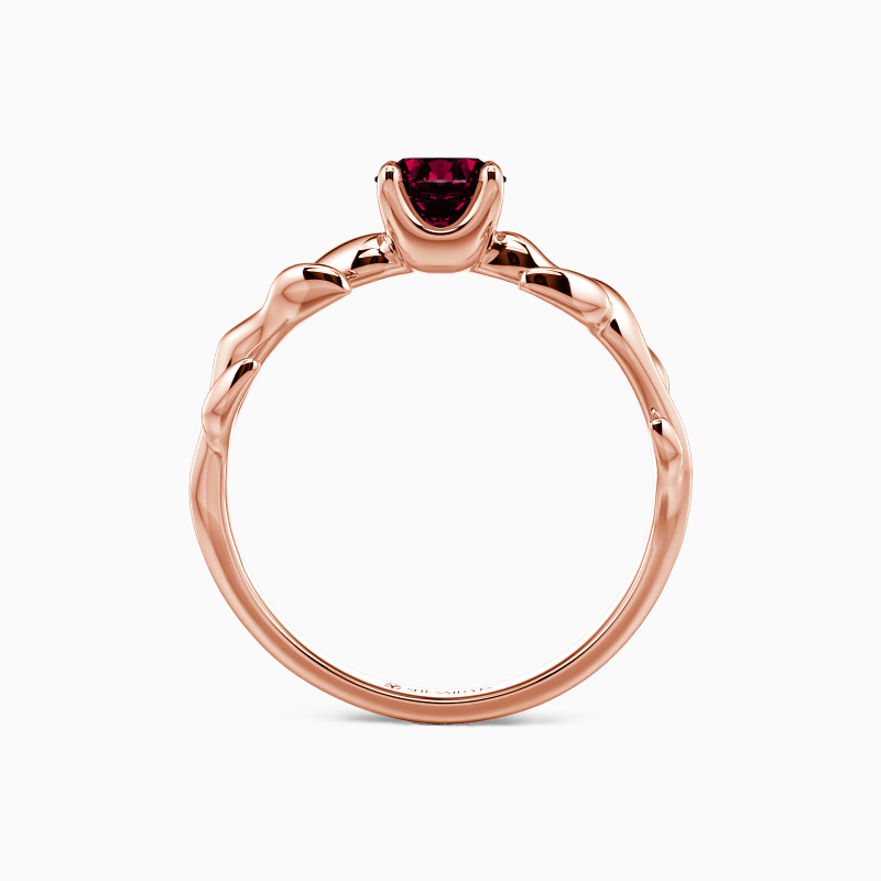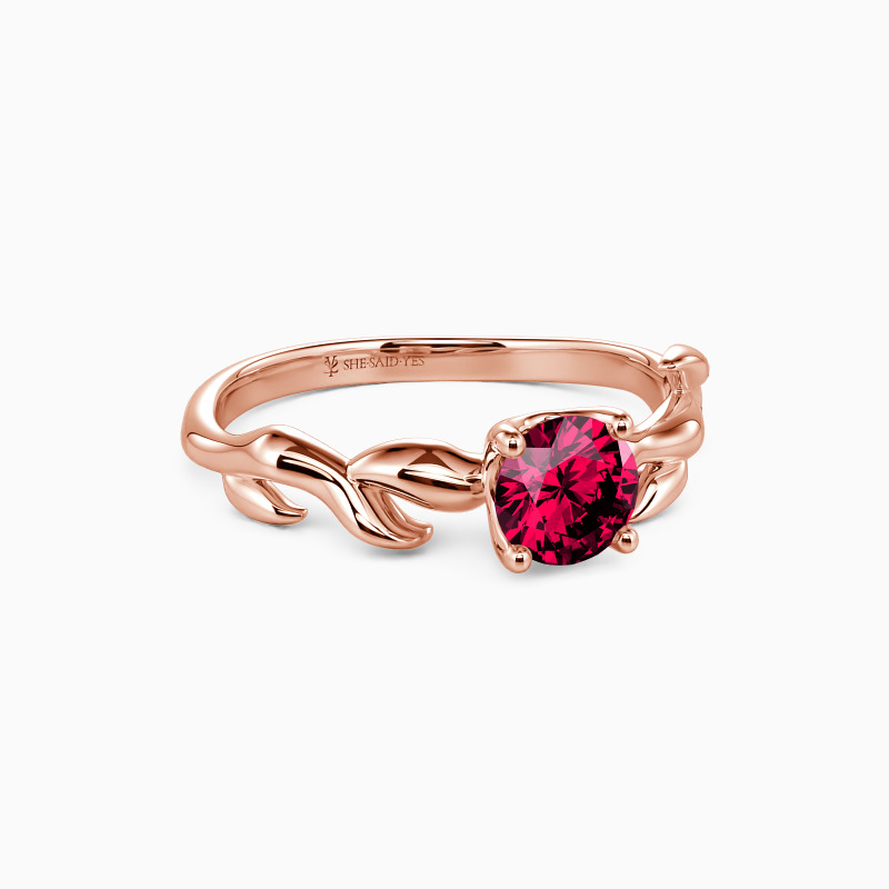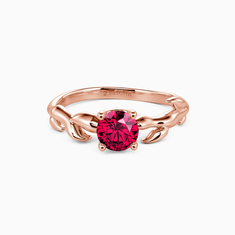 Nature-inspired for the chic bride-to-be. This solitaire engagement ring unveils a glistening round-cut stone studded in four prongs to shine at every angle. And leaf motifs on the polished shank further complement the center stone and overall look. So pop the question to her, and this ring will shine with your wonderful life together.