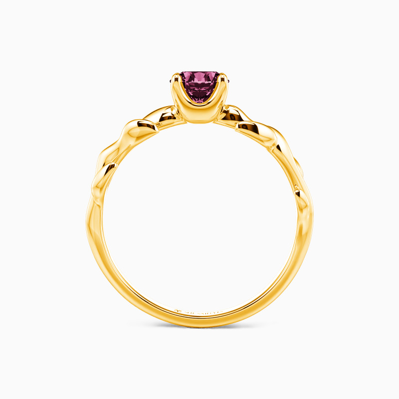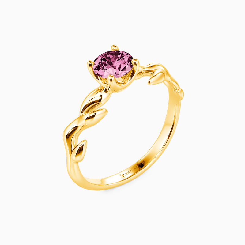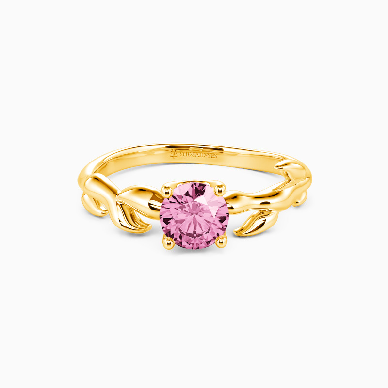 Nature-inspired for the chic bride-to-be. This solitaire engagement ring unveils a glistening round-cut stone studded in four prongs to shine at every angle. And leaf motifs on the polished shank further complement the center stone and overall look. So pop the question to her, and this ring will shine with your wonderful life together.