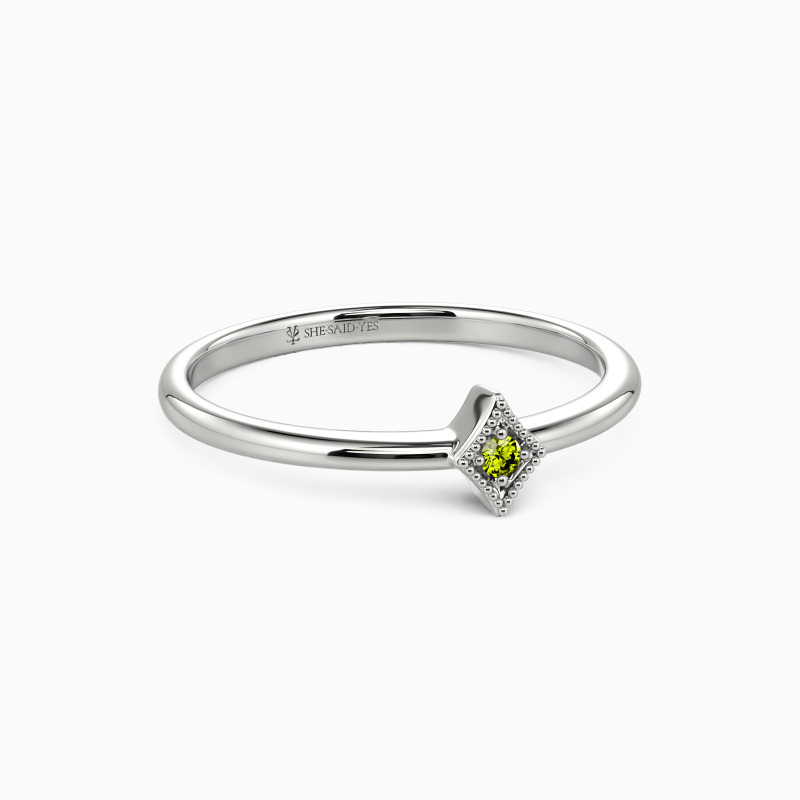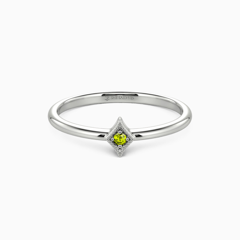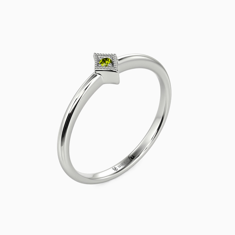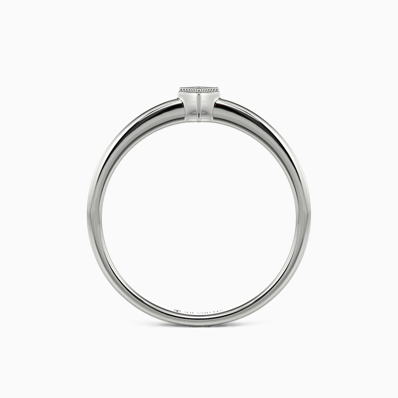 A scintillating round-cut stone adorns the trapezium frame at the center of the lustrous shank. It is held in a prong setting for an enchanting look. The exquisite milgrain embellishments along the edges lend a unique appeal to the ring. Wearing it solo or stacking it with other rings showcases your beauty.