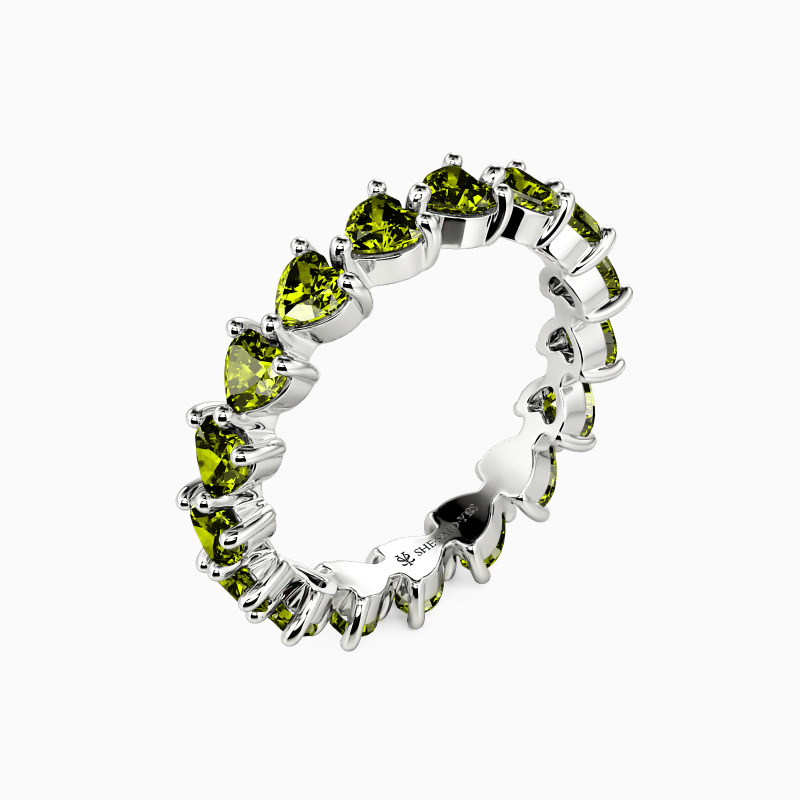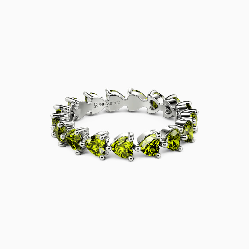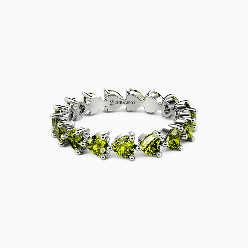 This elegantly simple modern eternity wedding band will perfectly fit on her finger. Eighteen accents cover the face of the ring in dazzling sparkle. They are positively vibrant, and they have a striking impact! Their lively heart-shaped cuts add a playful element to this ring. I would never find someone like you, because love glows in your eyes whenever I see you.