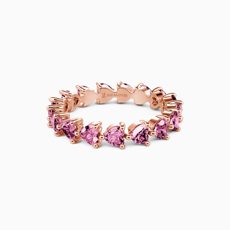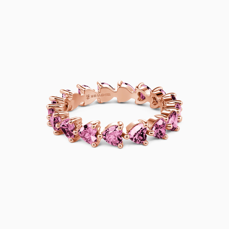 This elegantly simple modern eternity wedding band will perfectly fit on her finger. Eighteen accents cover the face of the ring in dazzling sparkle. They are positively vibrant, and they have a striking impact! Their lively heart-shaped cuts add a playful element to this ring. I would never find someone like you, because love glows in your eyes whenever I see you.