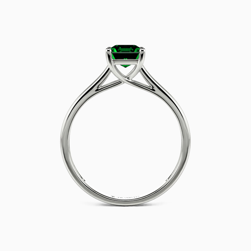 Simple yet divine, ask for her hand with this delicate solitaire. Standing tall in a traditional four-prong setting, a stylish Emerald-cut center stone radiates exceptional sparkle. An amazing look for the woman you adore, this engagement ring is finished with a shining polished shine.