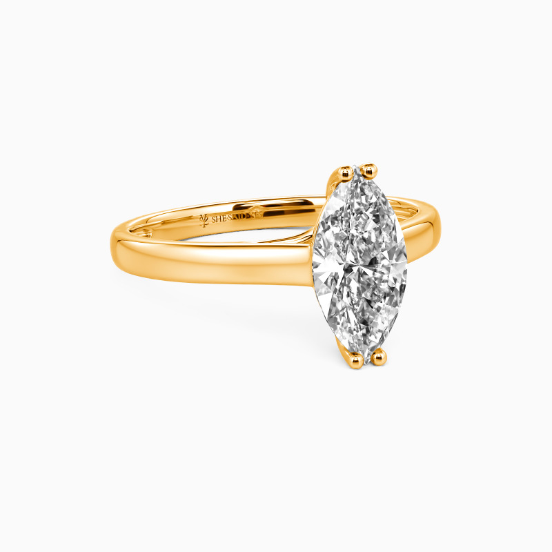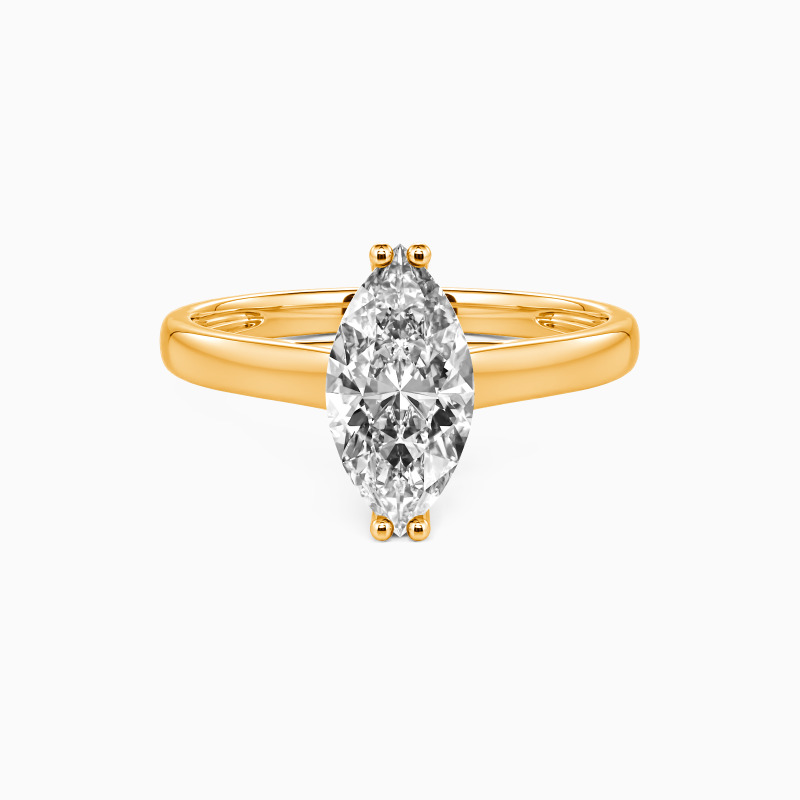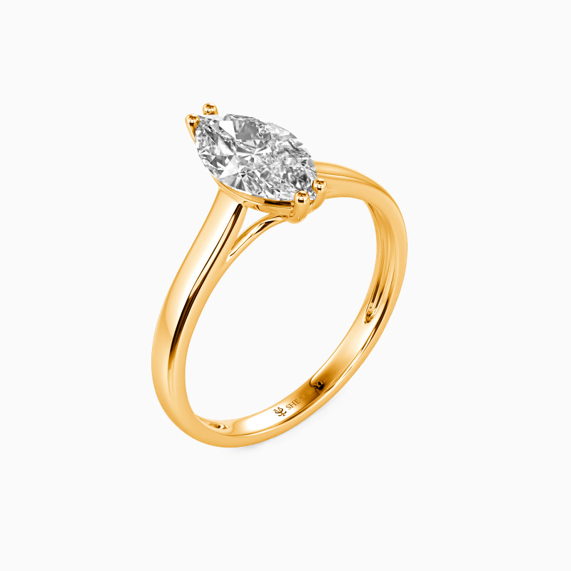 Simple yet divine, ask for her hand with this delicate solitaire. Standing tall in a traditional four-prong setting, a stylish marquise-cut center stone radiates exceptional sparkle. An amazing look for the woman you adore, this engagement ring is finished with a shining polished shine.