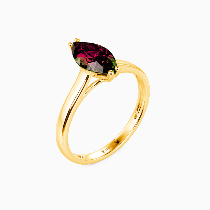 Simple yet divine, ask for her hand with this delicate solitaire. Standing tall in a traditional four-prong setting, a stylish marquise-cut center stone radiates exceptional sparkle. An amazing look for the woman you adore, this engagement ring is finished with a shining polished shine.
