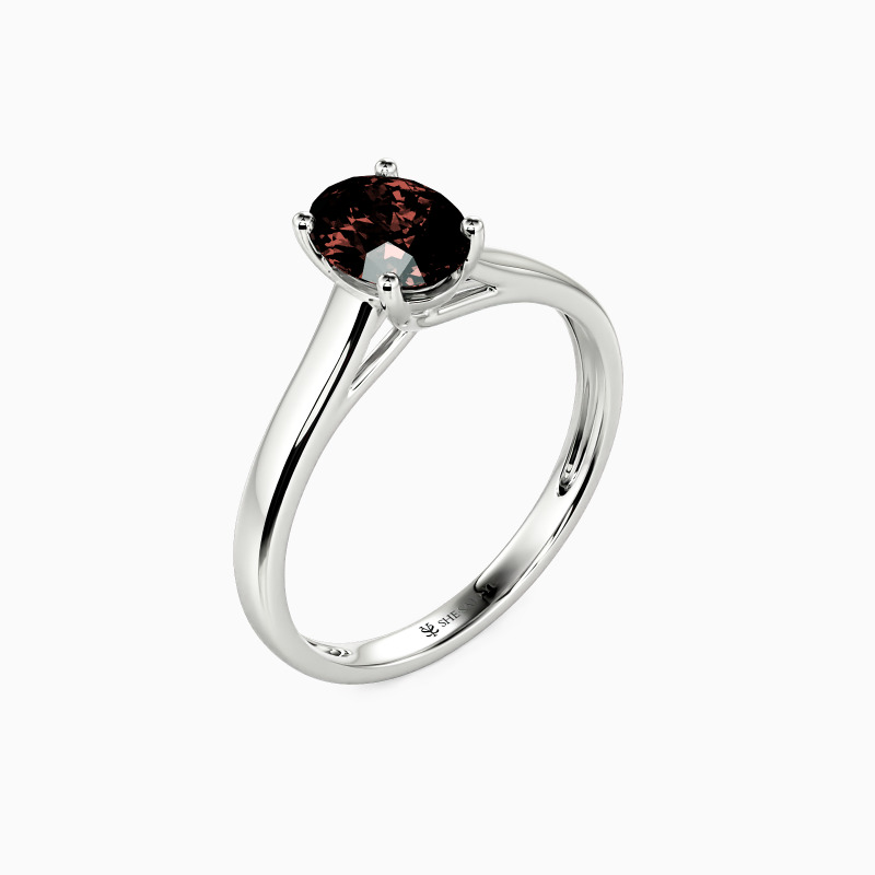 Simple yet divine, ask for her hand with this delicate solitaire. Standing tall in a traditional four-prong setting, a stylish oval-cut center stone radiates exceptional sparkle. An amazing look for the woman you adore, this engagement ring is finished with a shining polished shine.