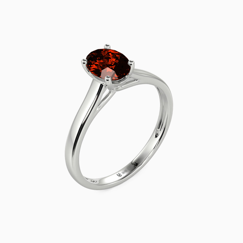 Simple yet divine, ask for her hand with this delicate solitaire. Standing tall in a traditional four-prong setting, a stylish oval-cut center stone radiates exceptional sparkle. An amazing look for the woman you adore, this engagement ring is finished with a shining polished shine.