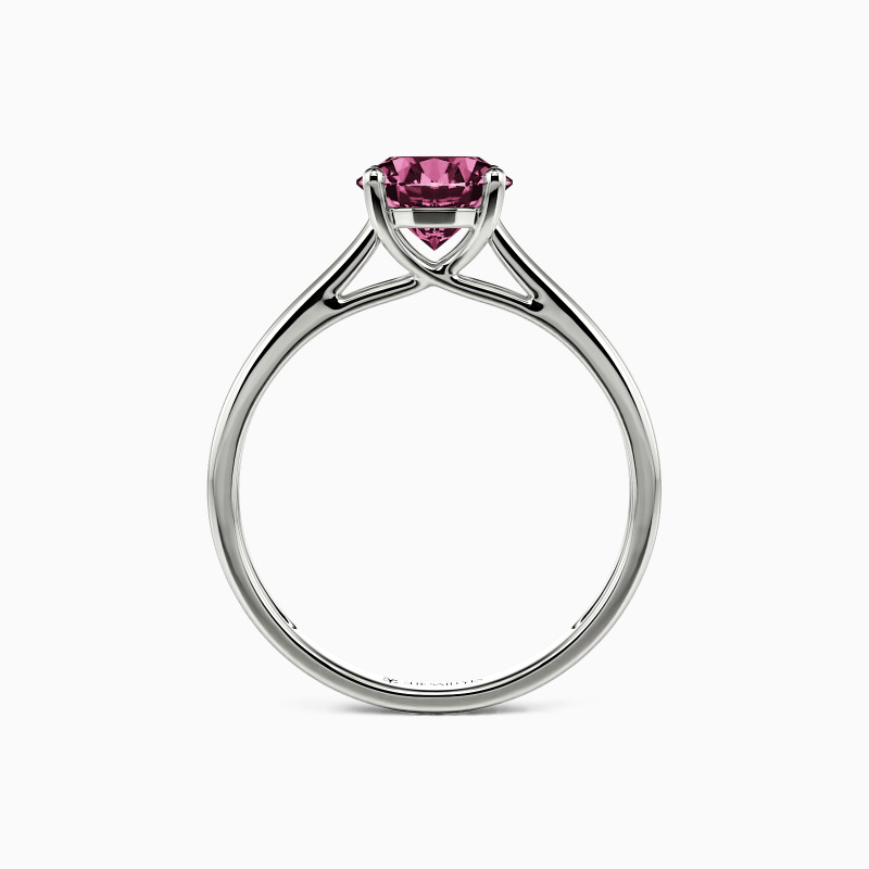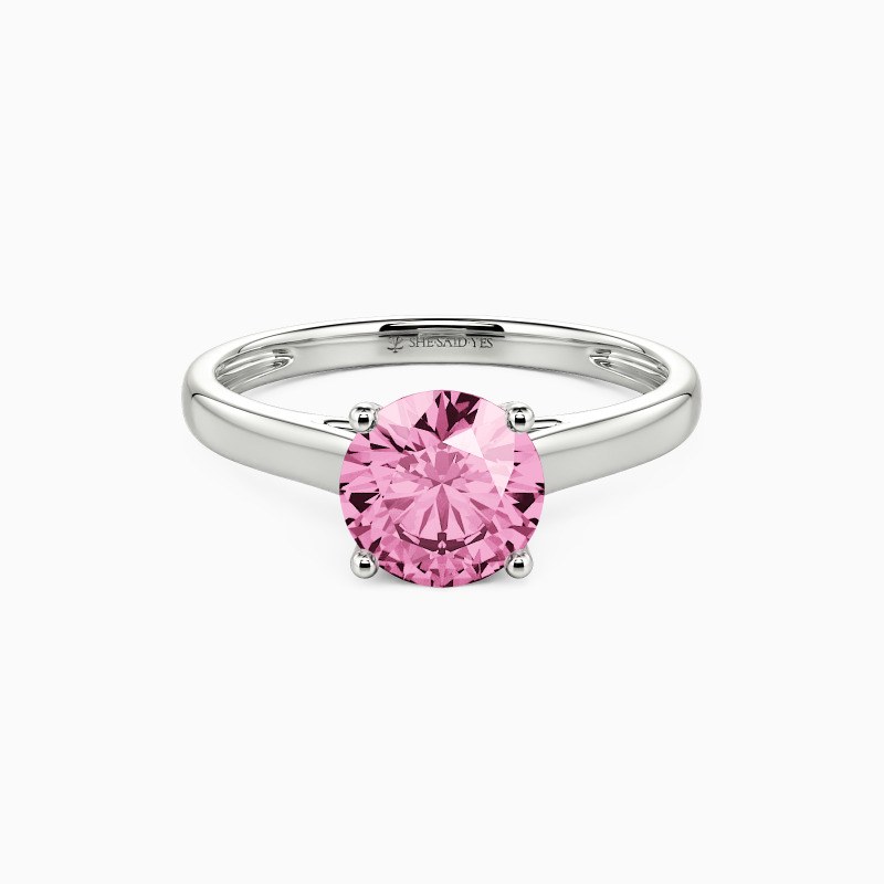 Simple yet divine, ask for her hand with this delicate solitaire. Standing tall in a traditional four-prong setting, a stylish round-cut center stone radiates exceptional sparkle. An amazing look for the woman you adore, this engagement ring is finished with a shining polished shine.