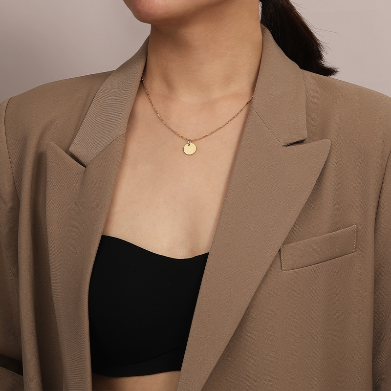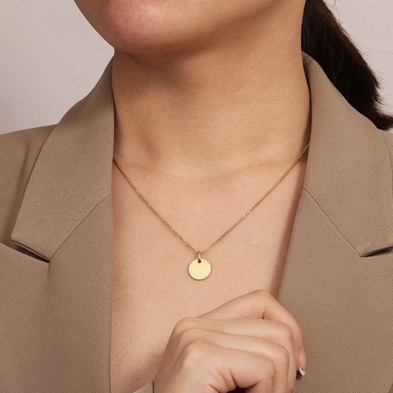 Keep your look chic and personal with this exquisitely engraved pendant necklace. Your initial is engraved into the surface of the small pendant for a custom style. The pendant and chain are made of solid precious metal and you can personalize the color you like.