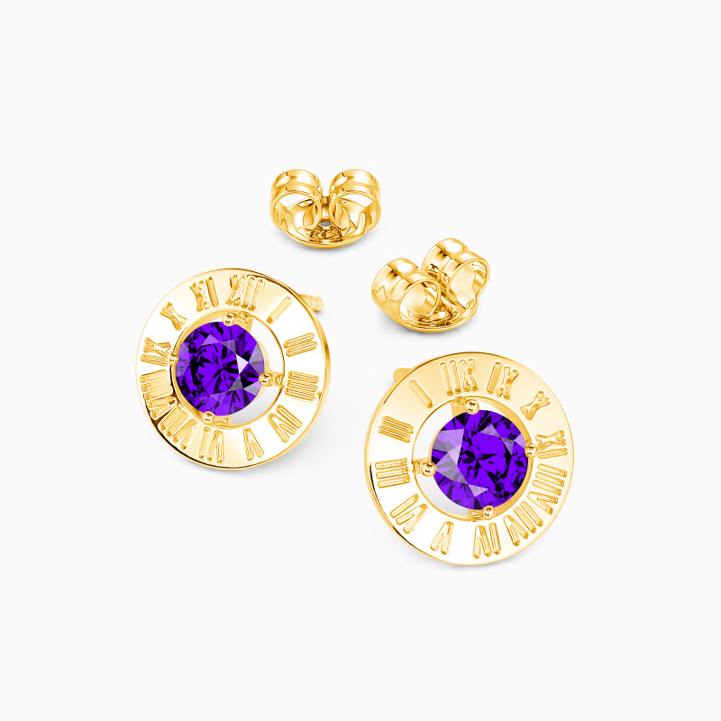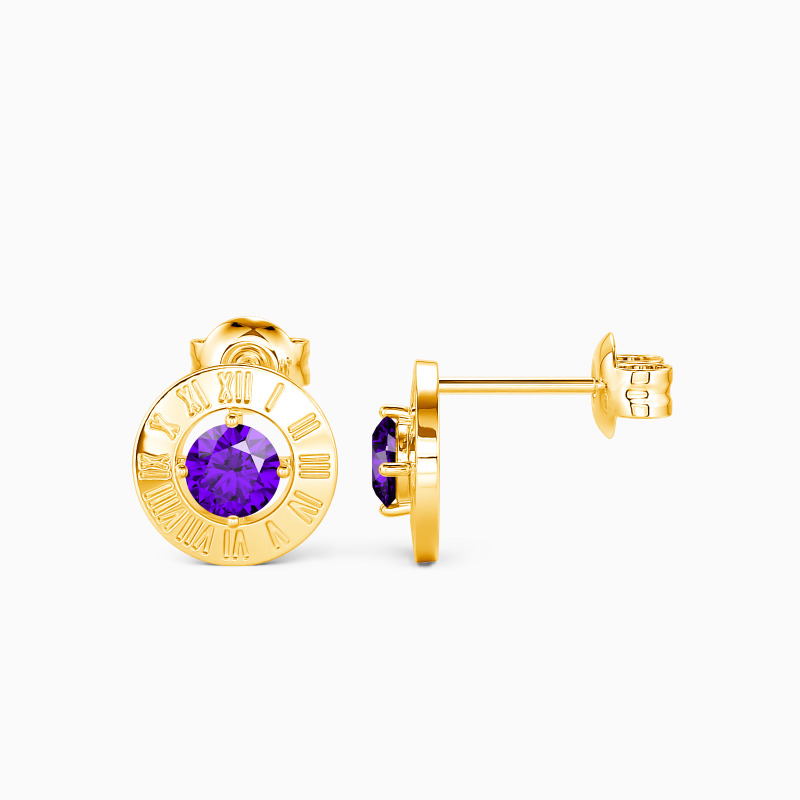 Complete any outfit with this pair of stud earrings in classic design. They showcase a trendy style by setting a sparkling round-cut stone in a metal frame. And Roman numeric is engraved on the metal to keep close a memory of the special times and people in your life. These studs can be worn from day to night, with any outfit, subtle and elegant.