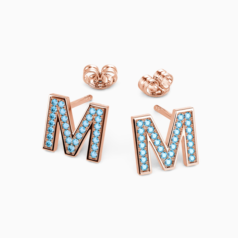 Designed with a simple letter M, these stud earrings create brilliance with their gleaming stone pave. With the flat metal edges, each earring will bring you a cozy comfort that fits any outfit you want. May the good times be with you always.