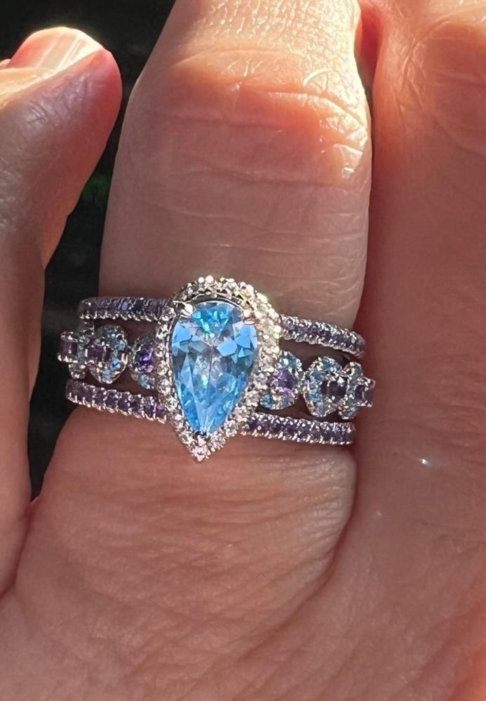 Features a pear-cut center stone with a shimmering halo on a double paved band, our interchangeable bridal set blending a hint of vintage style. Match an exquisite wedding ring with a series of round stones wrapped in gleaming halos; this retro-designed piece is the best choice to show the charming dazzle.