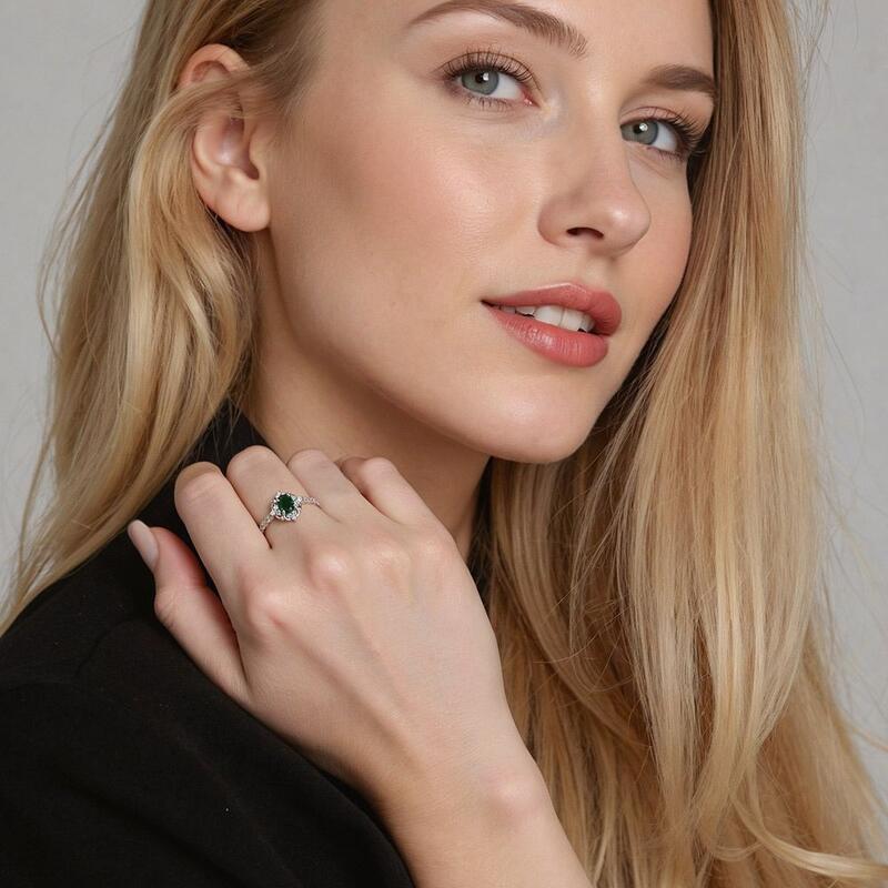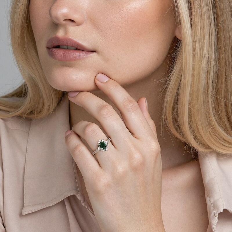 Vintage-inspired and floral-designed. This cherished engagement ring reflects the glistening radiance. The oval-cut center stone is enclosed by a floral halo with a cluster of round-cut stones, showcasing a full sparkle and a timeless beauty. Update your jewelry with this delicate engagement ring that won't go wrong.