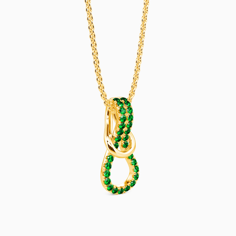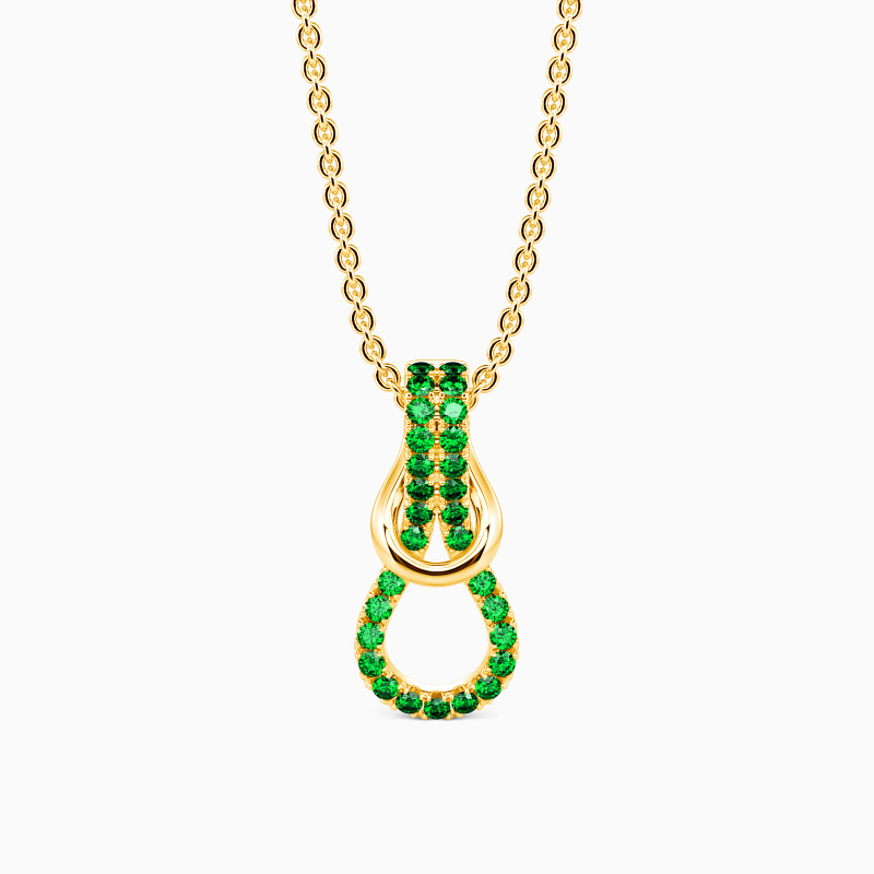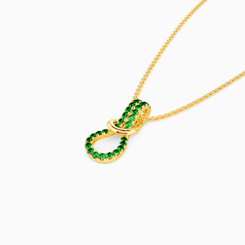 This infinity symbol-shaped necklace presents a fine series of tiny sparkling round stones encrusted in a pavé setting to draw your attention. Two ribbons intertwined with each other create this glossy and extraordinary look. Customize the stone and metal you like and make your classy statement with this necklace.
