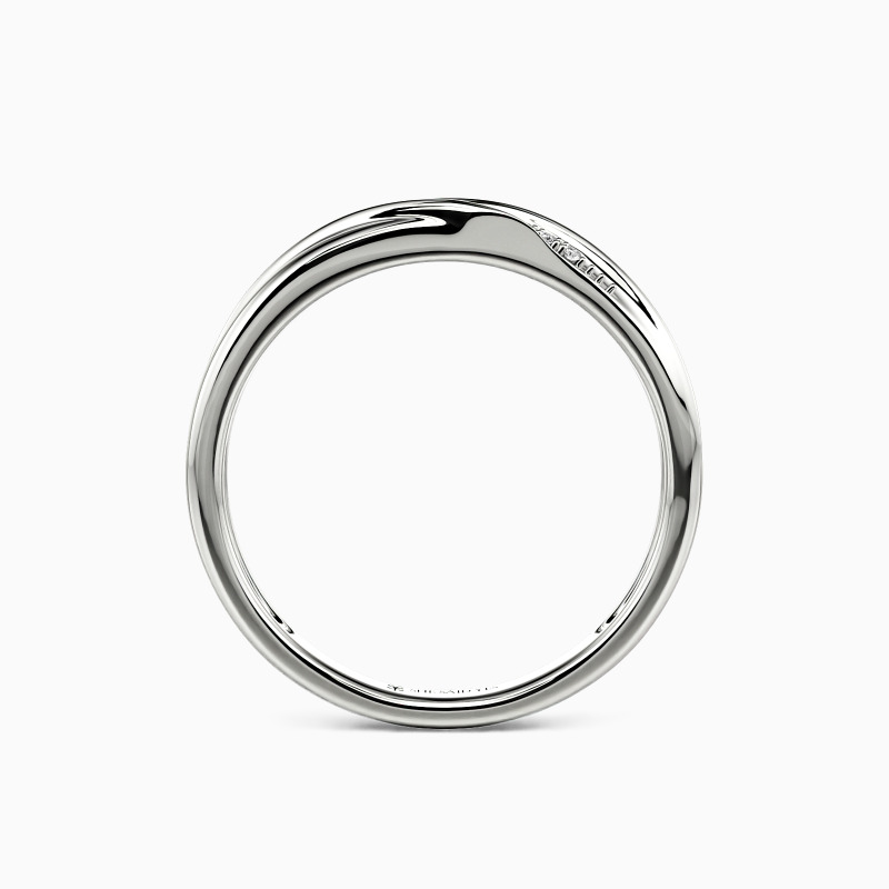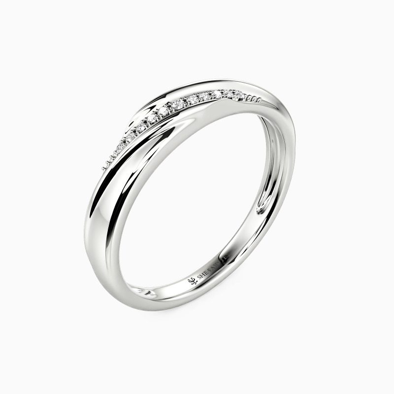 This wedding band holds a captivating charm with the small scintillating round-shaped accents encrusted in a pavé setting. And precious polished metal gives an extra brilliance to the overall look. You can wear it alone or pair it with your engagement ring to create a perfect bridal set.