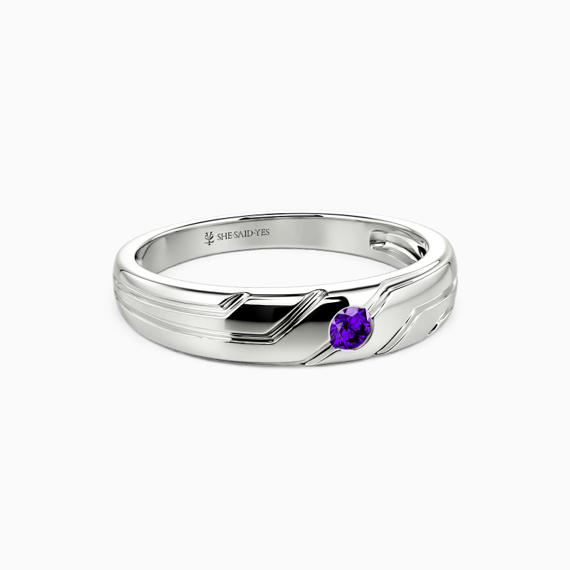 This men's band unveils a glimmering round-cut center stone studded in a bezel setting. And the engraved asymmetric patterns on the polished shank adds to its aesthetic look. When you walk down the aisle, I see my hope, my inspiration and my angel.