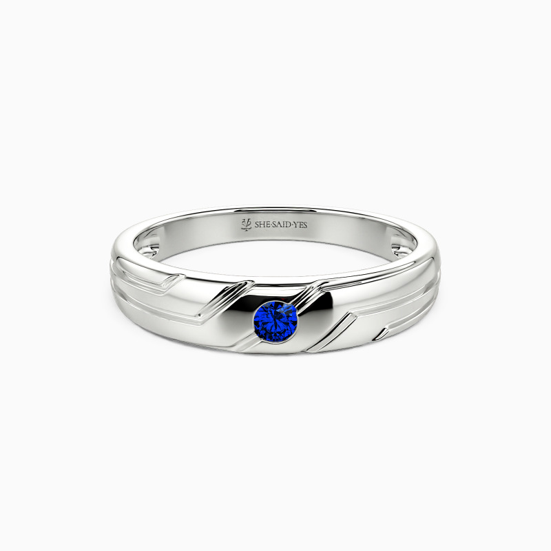 This men's band unveils a glimmering round-cut center stone studded in a bezel setting. And the engraved asymmetric patterns on the polished shank adds to its aesthetic look. When you walk down the aisle, I see my hope, my inspiration and my angel.