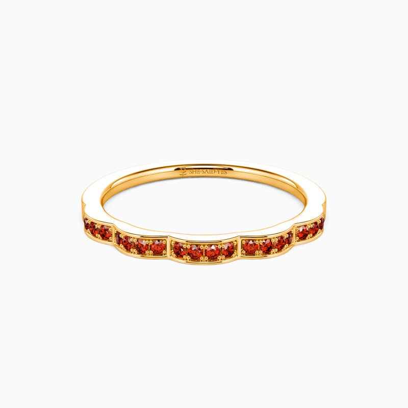 Regal, pristine, and with a touch of vintage detail—this artful wedding ring from SHE·SAID·YES is a modern vision. Dazzling round stones sparkle on the waved shank adds extra shimmer to this unique ring. This exceptional wedding ring will forever express your eternal love and undying commitment.