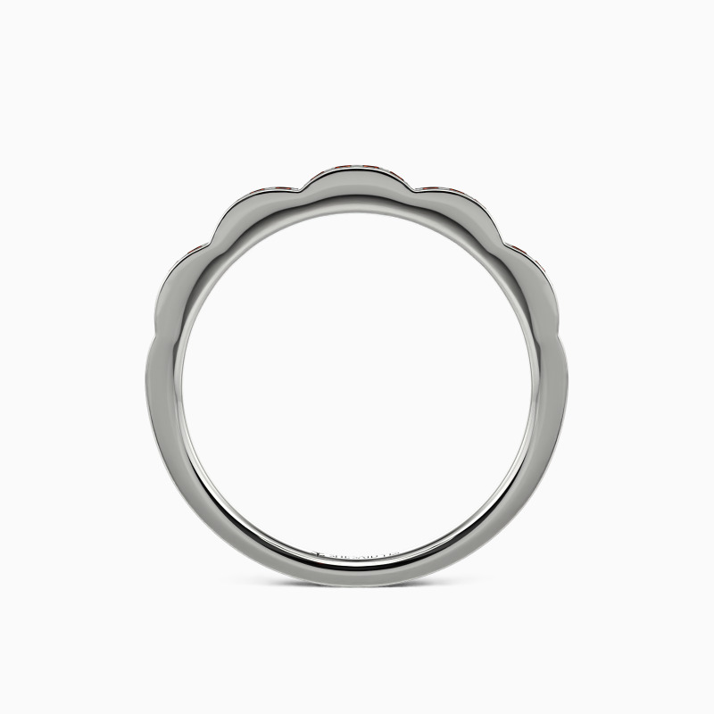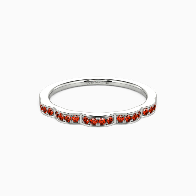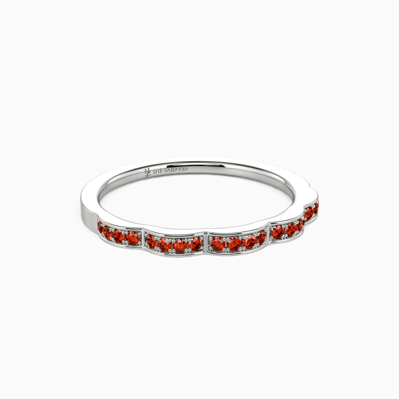 Regal, pristine, and with a touch of vintage detail—this artful wedding ring from SHE·SAID·YES is a modern vision. Dazzling round stones sparkle on the waved shank adds extra shimmer to this unique ring. This exceptional wedding ring will forever express your eternal love and undying commitment.