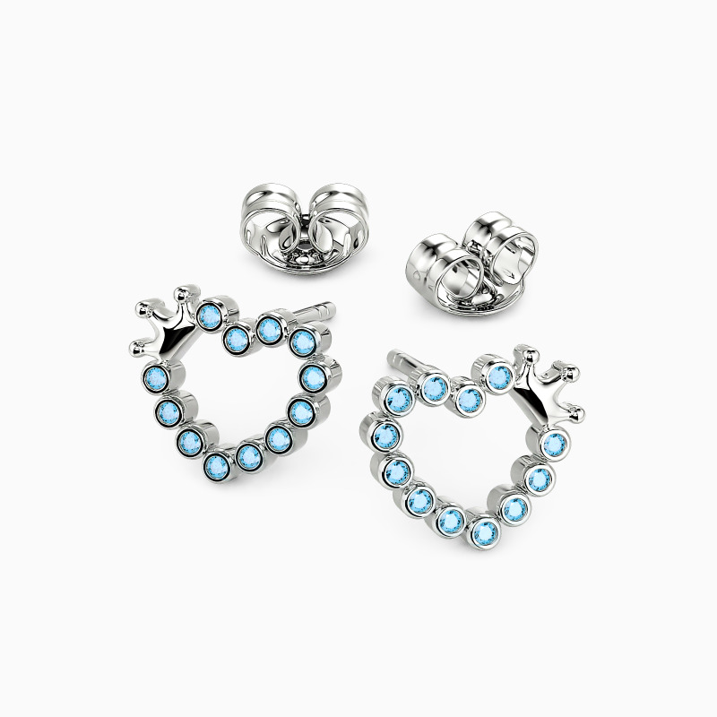 Treat yourself or delight your lover with this personalized stud earring. These cute accessories are set in the outline of the heart, featuring glittering round-cut stones and a little high polished crown. Blending fashion with radiance at the same time, it must attract you at first sight.