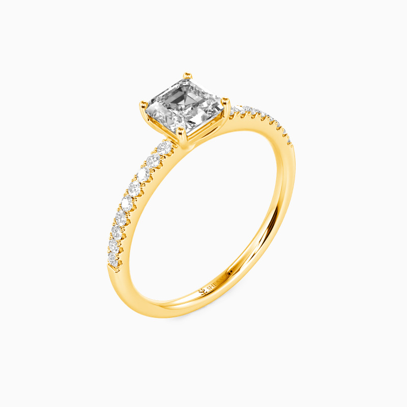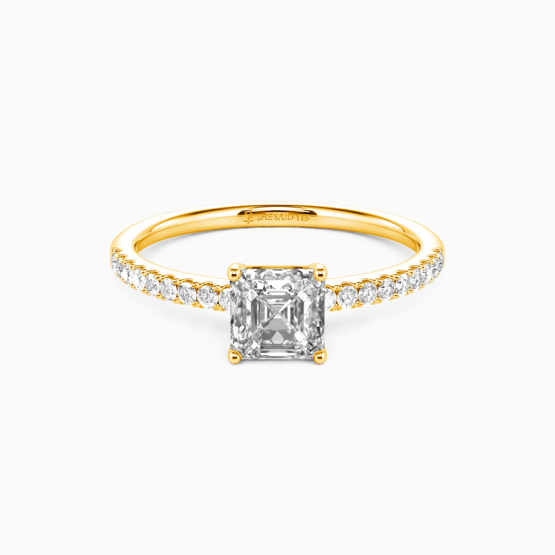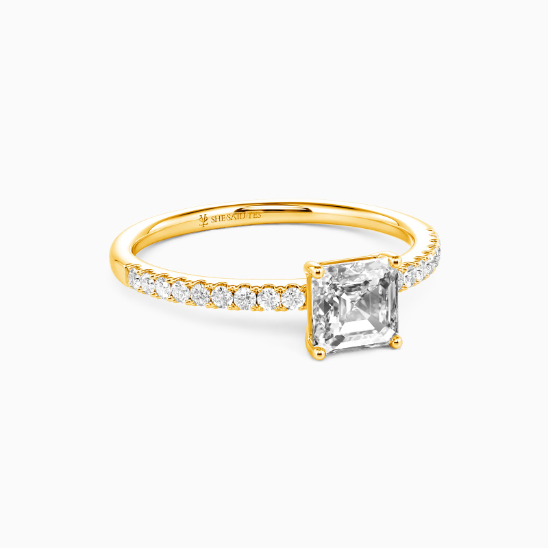 "My Queen" 0.6ct Asscher Cut Side Stone Engagement Ring