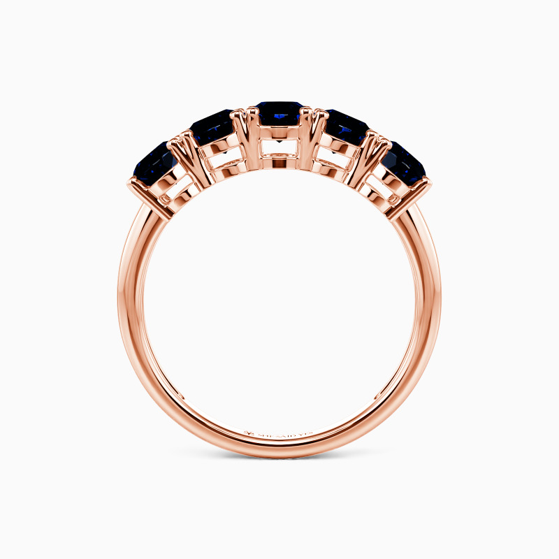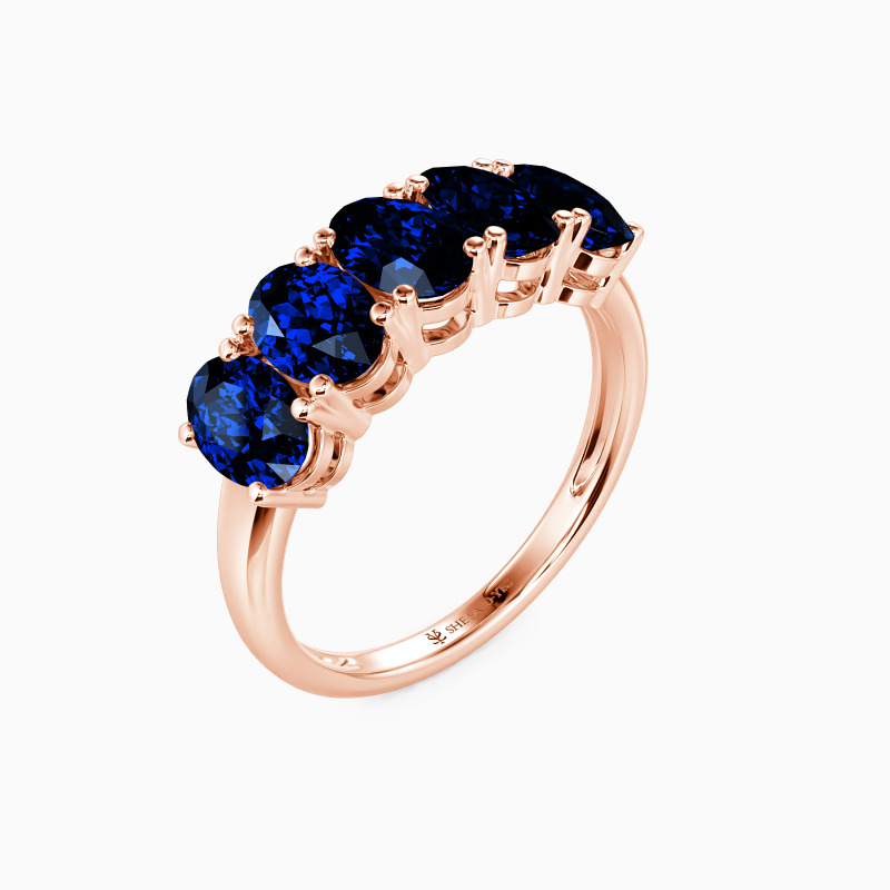 The classic five-stone design offers you a perfect wedding witness. Five brilliant oval-cut stones of equal size held in the polished shank create this minimalistic wedding ring. And the delicate prongs maximize the focus and light performance of gemstones. They add to the beauty of the ring and take it to the next level.