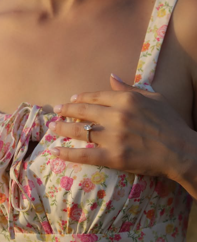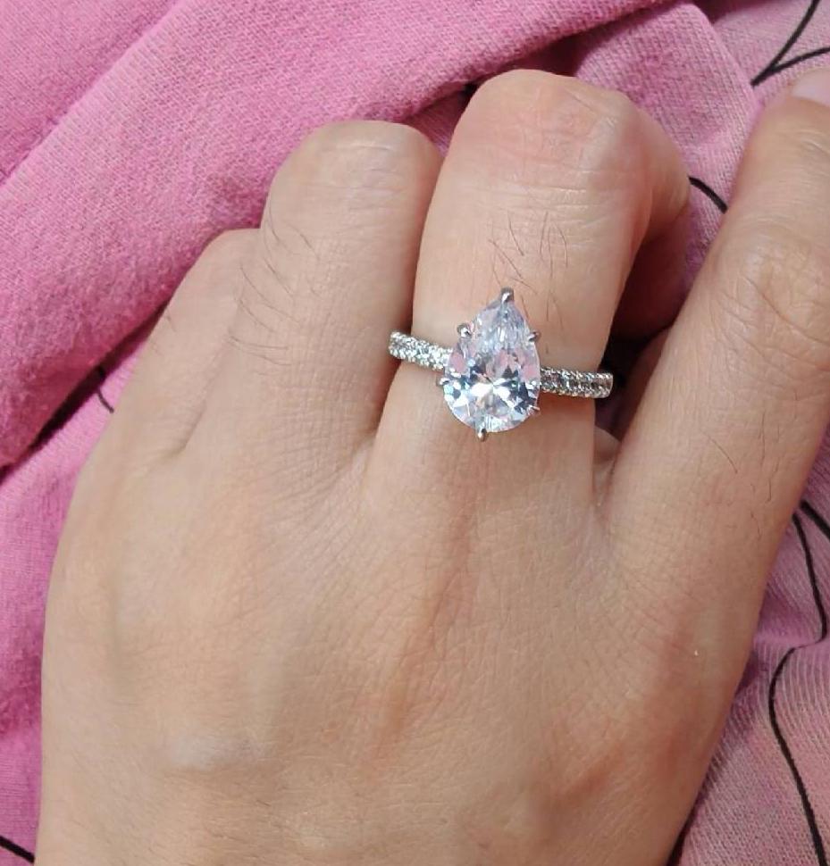 "My Soulmate" 2ct Pear Cut Side Stone Engagement Ring