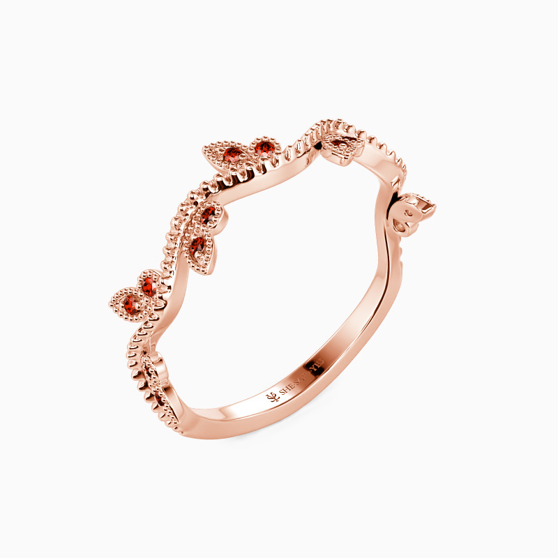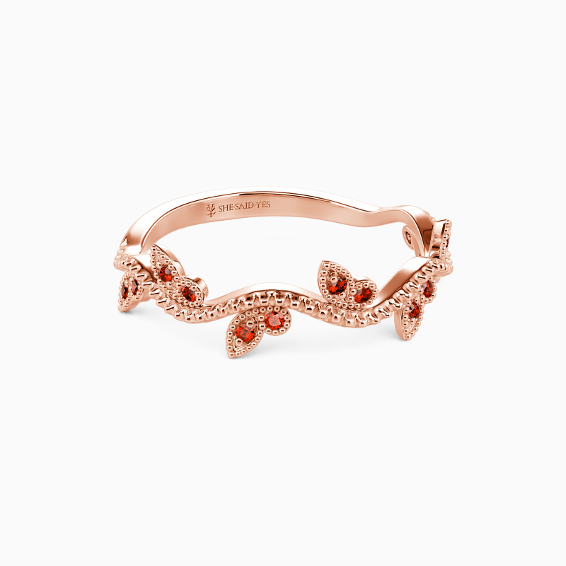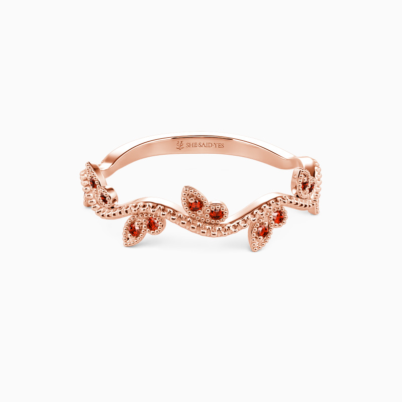 Alluring and stylish, the curved vine-like shank gives this classic wedding band a unique look. Brilliant round-cut accents are nestled in the milgrain frame provide a lovely flowing and growing feeling. This delicate and natural look will be stunning next to your engagement ring, creating the perfect bridal set.