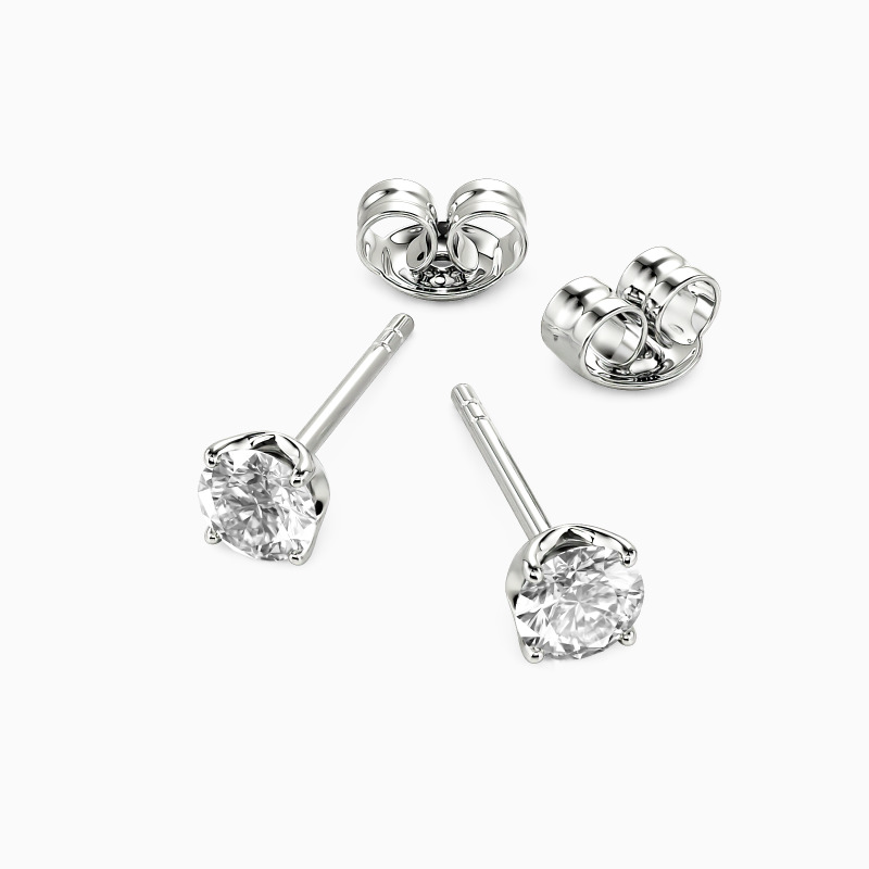 Include these dainty solitaire earrings in your jewelry collection. Two round-cut stones are embedded in a classic four-prong setting to create an eye-catching, sparkling focal point. These earrings are sure to add subtle brilliance to any attire and enhance your elegant appeal.