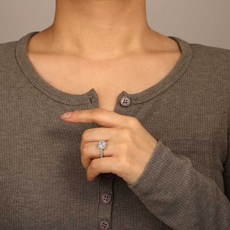 "My Yearning" Radiant Cut Halo Engagement Ring
