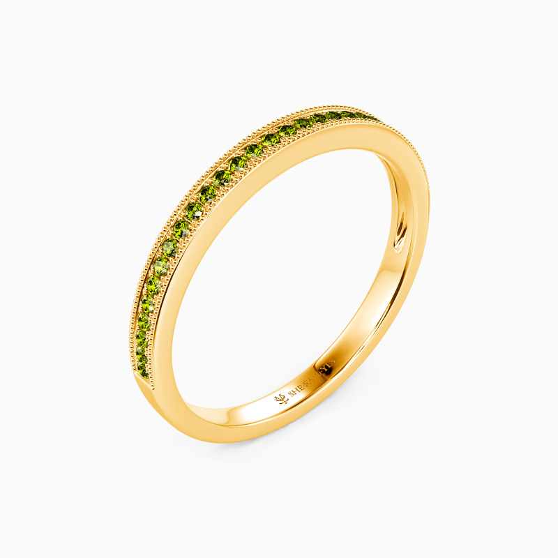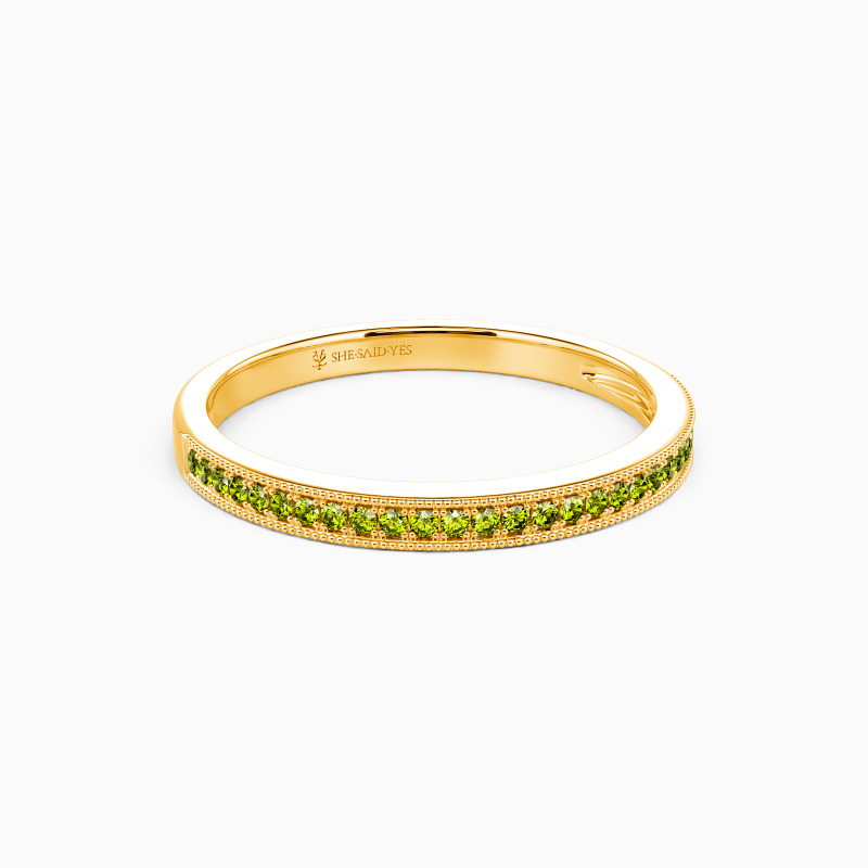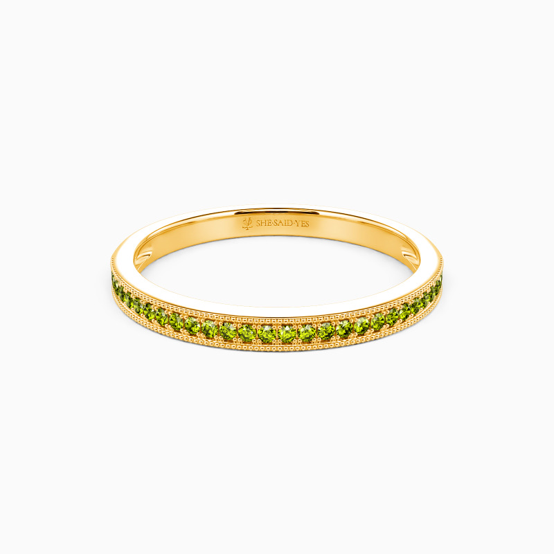 Nothing is more elegant than our striking semi-eternity wedding band. Featuring a row of shimmering round stones, it's surrounded by sophisticated milgrain along the edges. Always the right choice for your big day.