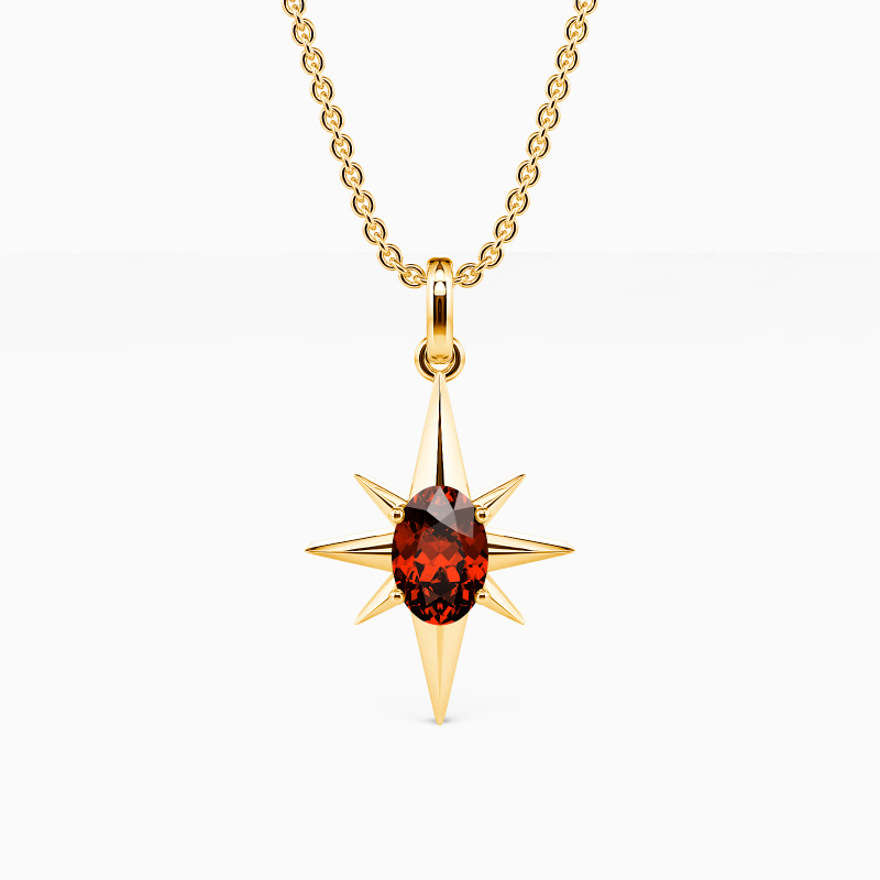 Chic and fabulous. This eight-point star pendant necklace symbolizes hope and guidance and is the ideal everyday accessory. It features a glimmering oval-cut gem in the center that emits the shining metallic rays from eight directions. This striking piece will lighten your day and save you from the darkness.
