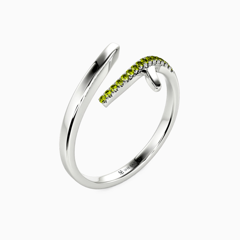 A lovely sparkler of a ring. This sustainable forever open curve fashion ring features gleaming stones atop its gracefully curving band. Inlaid with 17 petite round cut stones in the opening on one side. Stacks nicely or lovely enough to stand alone. The design of the sprout implies that love is taking root and sprouting.