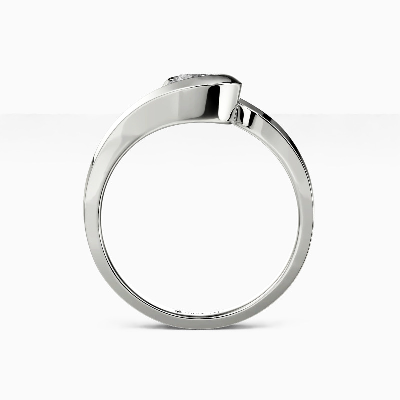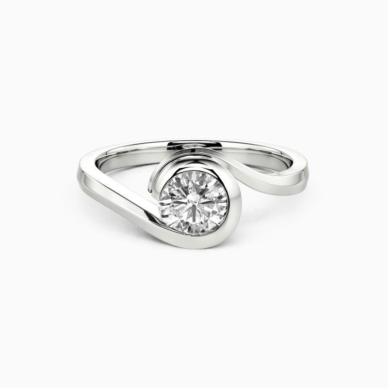 The wavy design will show you the curvaceous beauty of our delicate engagement ring. Featuring a twinkling round gem in the middle entirely wrapped by a precious bezel extended from the flowing shank, this contemporary look defines your compelling charisma and sculpts the message of eternal love.