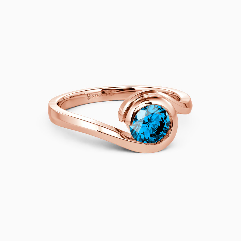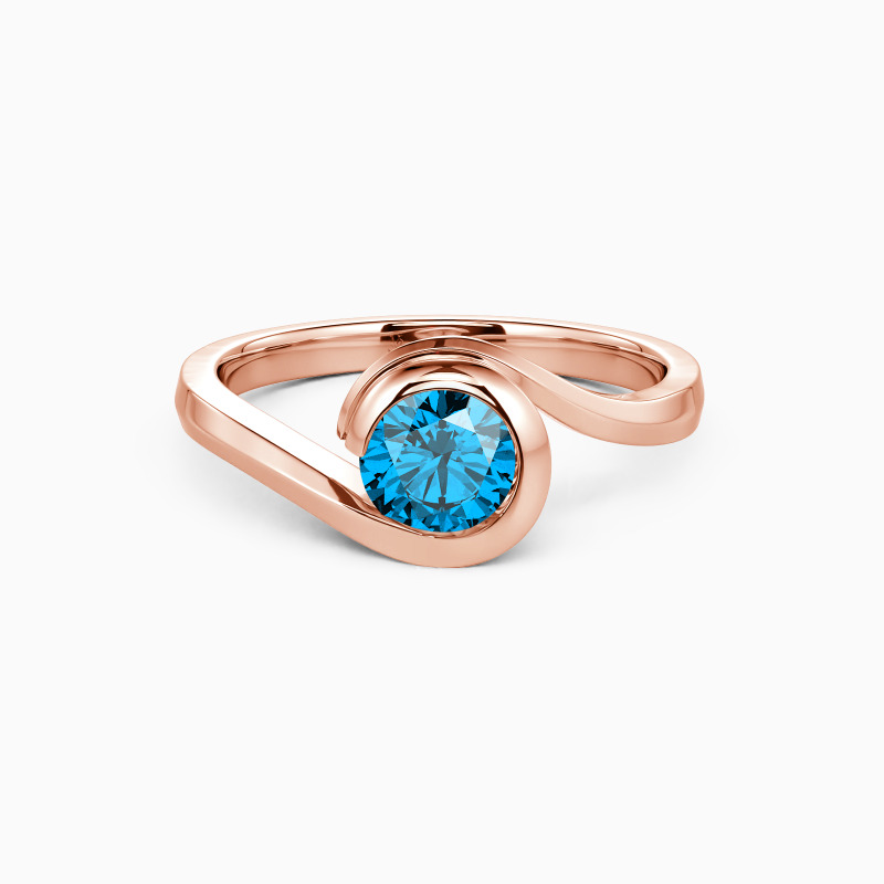 The wavy design will show you the curvaceous beauty of our delicate engagement ring. Featuring a twinkling round gem in the middle entirely wrapped by a precious bezel extended from the flowing shank, this contemporary look defines your compelling charisma and sculpts the message of eternal love.
