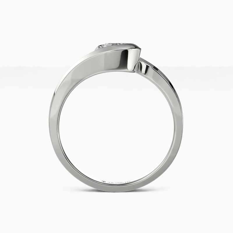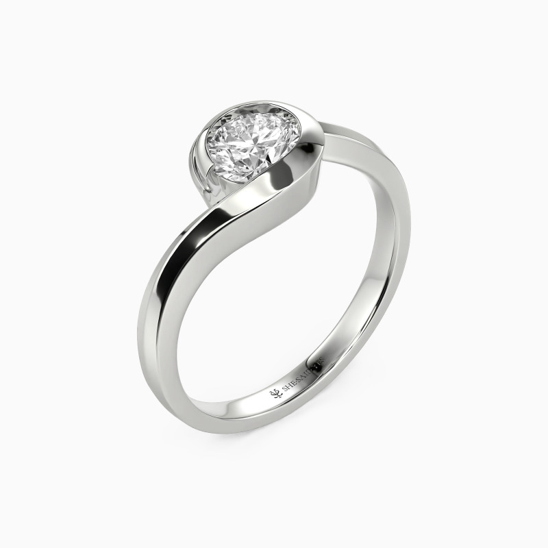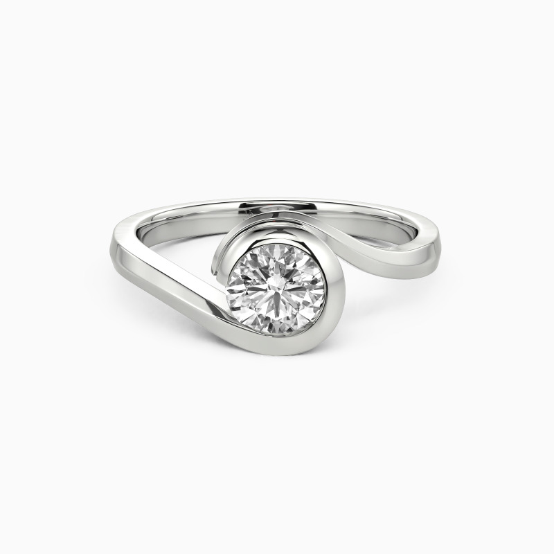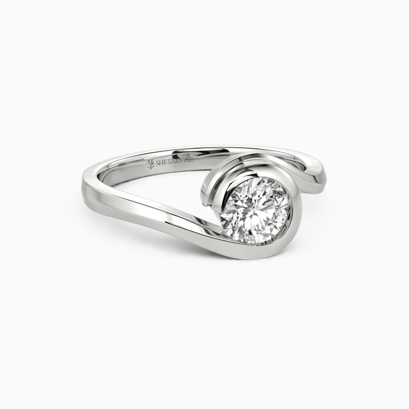 The wavy design will show you the curvaceous beauty of our delicate engagement ring. Featuring a twinkling round gem in the middle entirely wrapped by a precious bezel extended from the flowing shank, this contemporary look defines your compelling charisma and sculpts the message of eternal love.