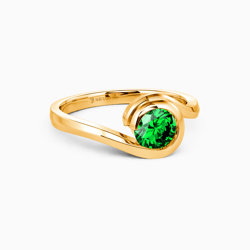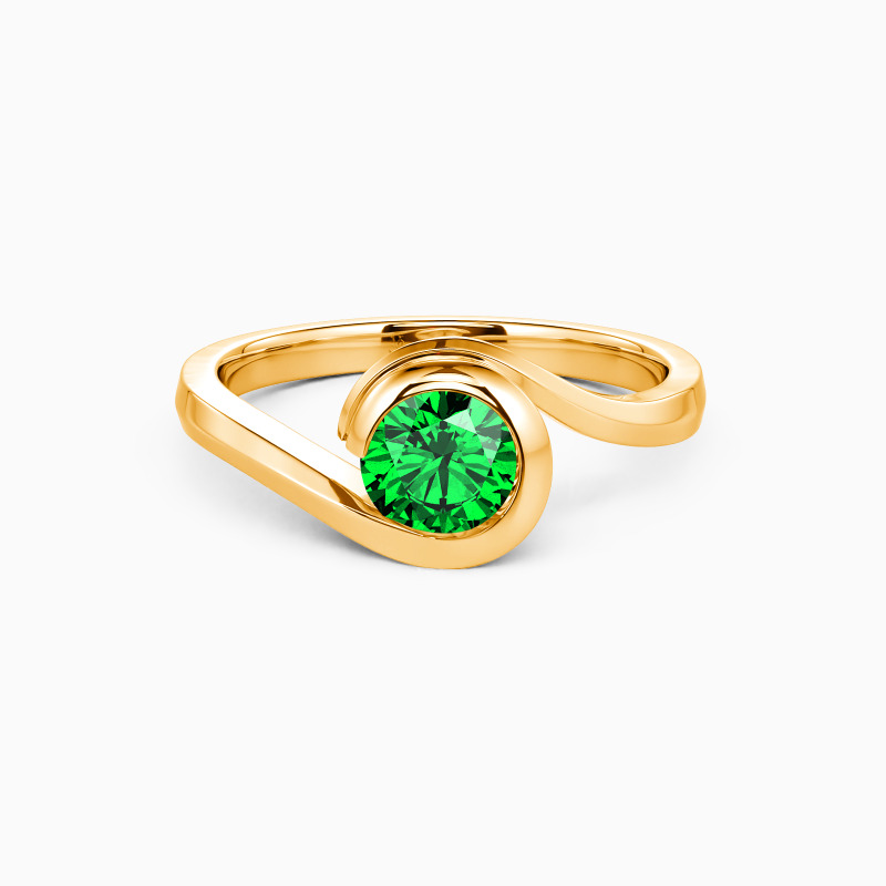 The wavy design will show you the curvaceous beauty of our delicate engagement ring. Featuring a twinkling round gem in the middle entirely wrapped by a precious bezel extended from the flowing shank, this contemporary look defines your compelling charisma and sculpts the message of eternal love.