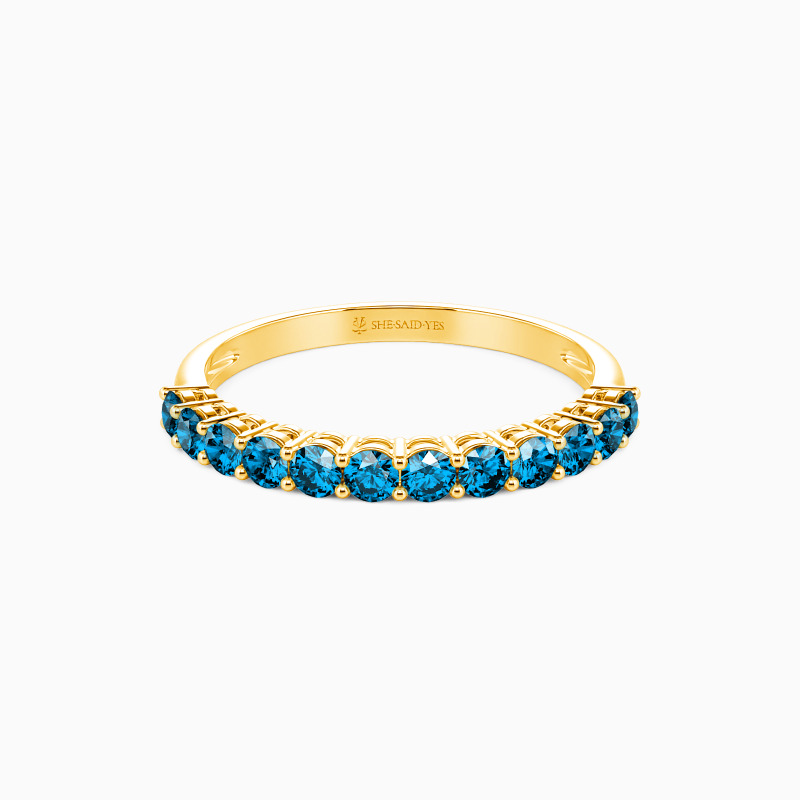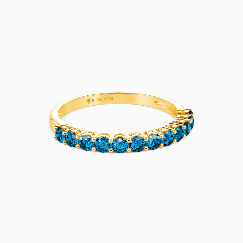Beautifully studded in a shared prong setting is twelve shimmering stones in a row, sparkling halfway along the shank. And the other half lustrous shank permits the whole ring to radiate more lights from all angles. Wearing it alone is enough to unveil your appeal with this classic and timeless design.
