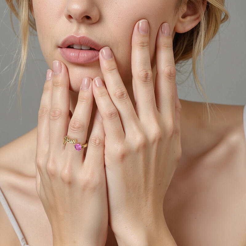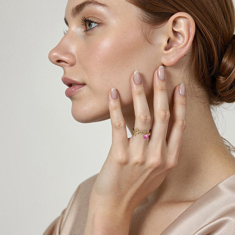 Meaningful, yet exceptional. This sleek metal ring celebrates infinite peace with a handwritten word of peace and a delicate heart-shaped stone. Keep peace in your heart forever. Live in harmony, peaceful in the world.