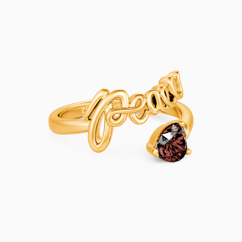 Meaningful, yet exceptional. This sleek metal ring celebrates infinite peace with a handwritten word of peace and a delicate heart-shaped stone. Keep peace in your heart forever. Live in harmony, peaceful in the world.
