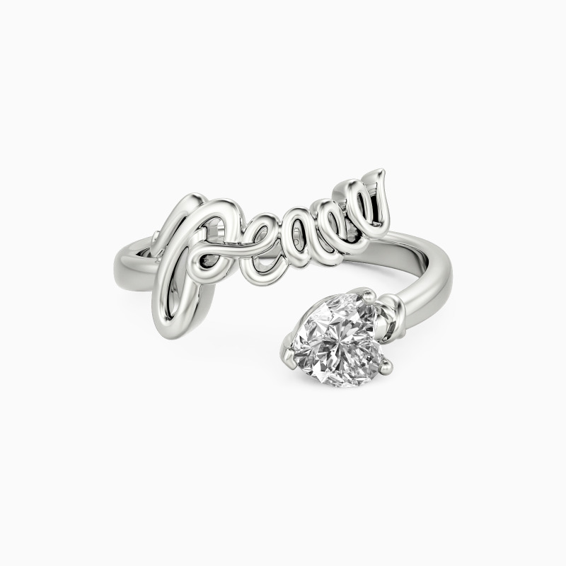 "Peace Believer" Heart Cut Solitaire Peace Ring