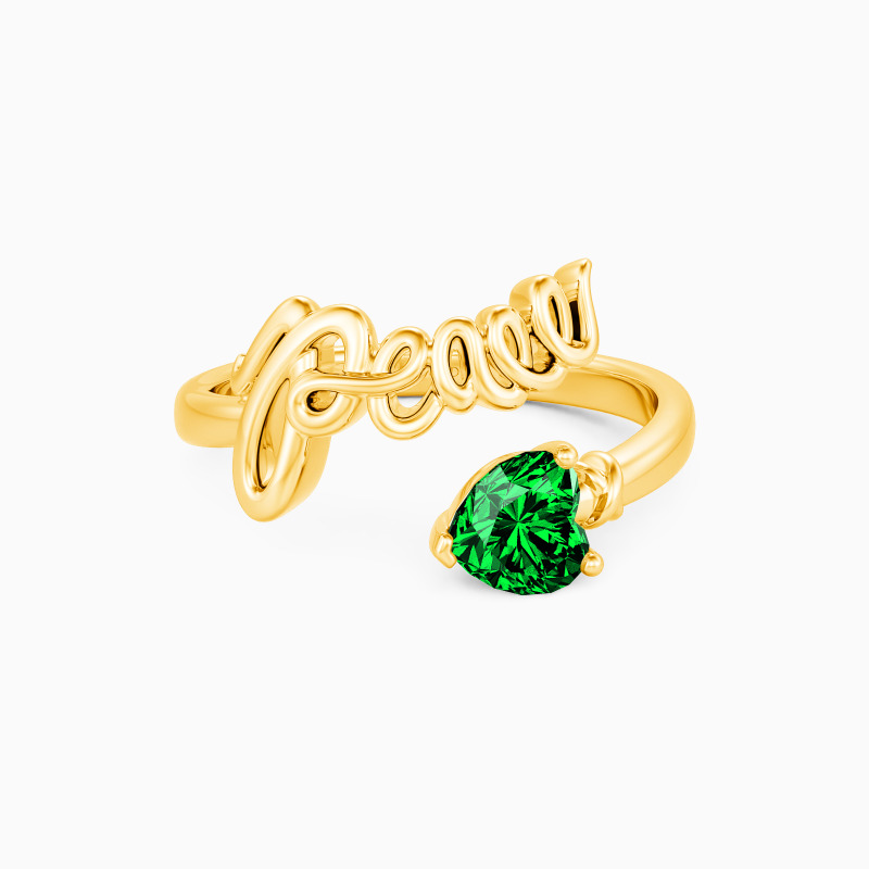 Meaningful, yet exceptional. This sleek metal ring celebrates infinite peace with a handwritten word of peace and a delicate heart-shaped stone. Keep peace in your heart forever. Live in harmony, peaceful in the world.