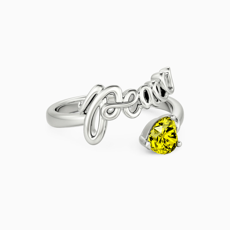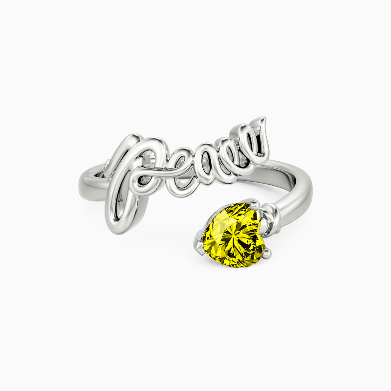 "Peace Believer" Heart Cut Solitaire Peace Ring