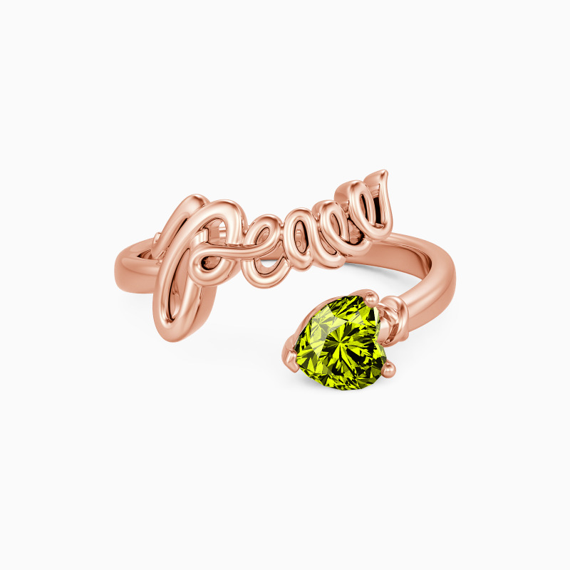 Meaningful, yet exceptional. This sleek metal ring celebrates infinite peace with a handwritten word of peace and a delicate heart-shaped stone. Keep peace in your heart forever. Live in harmony, peaceful in the world.