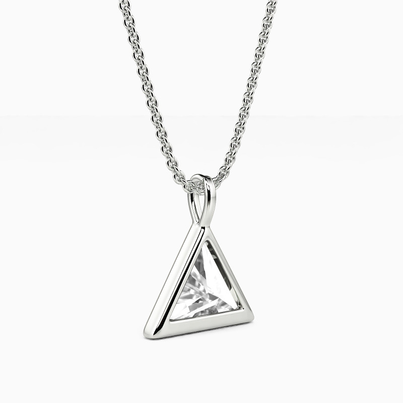 This nifty pendant necklace is made to suit your every pretty outlook. It features a brilliant triangle-cut gem protected by a highly polished bezel in the same shape. Exuding an innate radiance, this precious accessory will always be your first choice.
