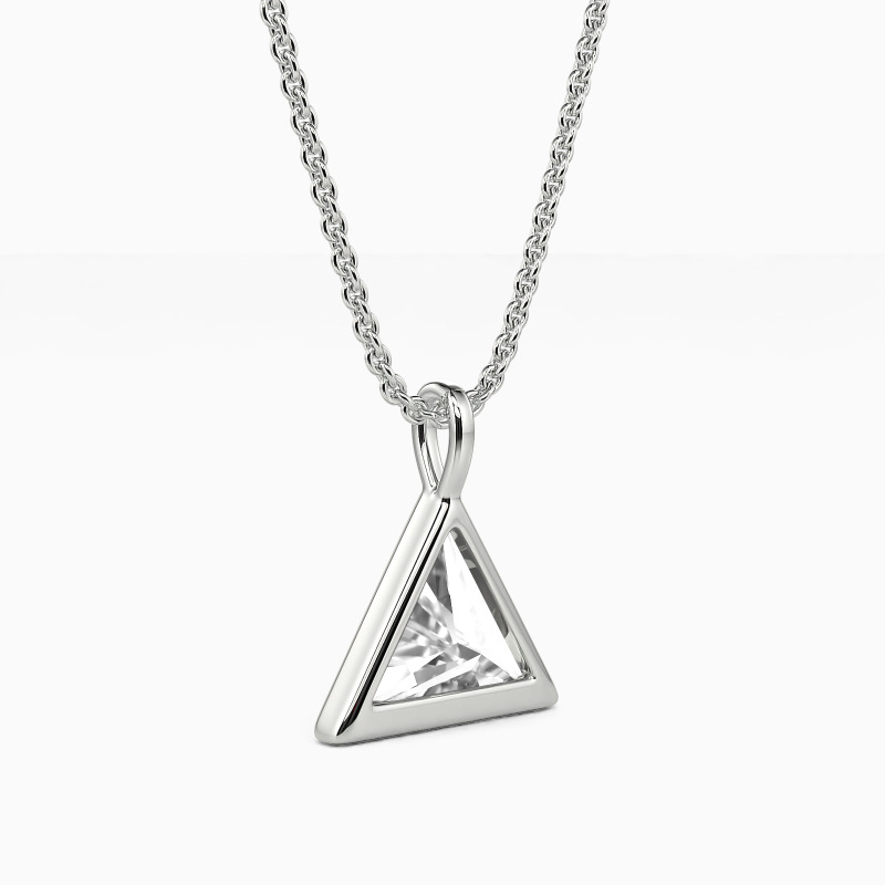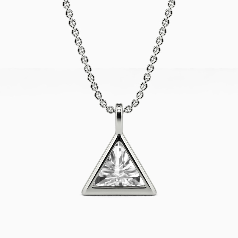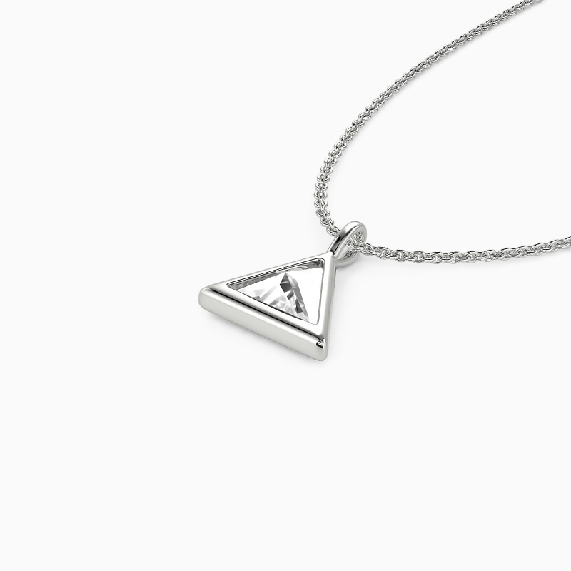 This nifty pendant necklace is made to suit your every pretty outlook. It features a brilliant triangle-cut gem protected by a highly polished bezel in the same shape. Exuding an innate radiance, this precious accessory will always be your first choice.