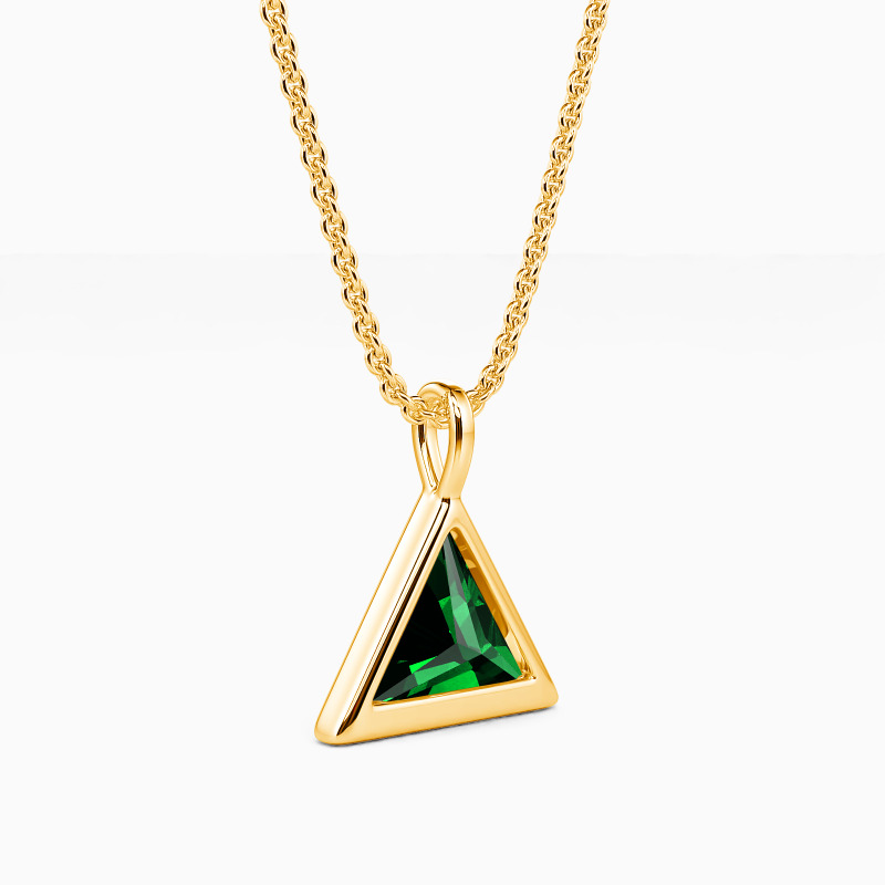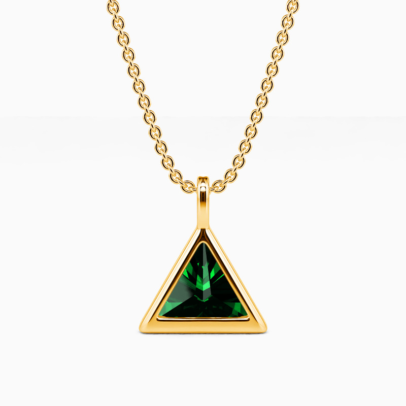 This nifty pendant necklace is made to suit your every pretty outlook. It features a brilliant triangle-cut gem protected by a highly polished bezel in the same shape. Exuding an innate radiance, this precious accessory will always be your first choice.