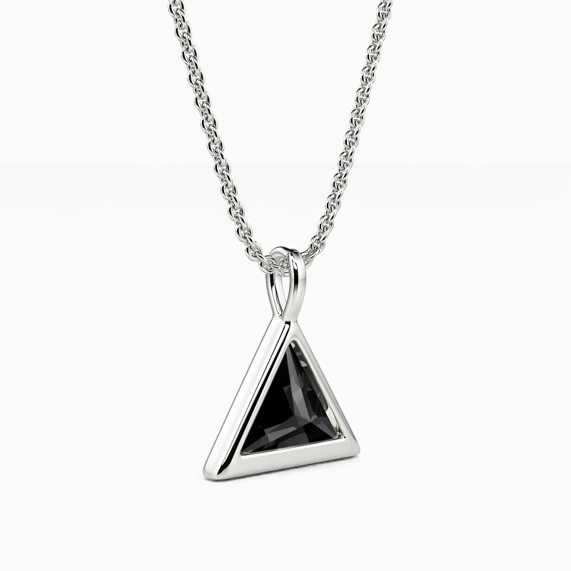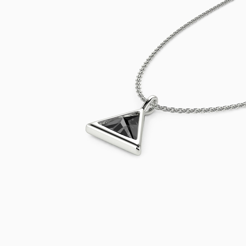 This nifty pendant necklace is made to suit your every pretty outlook. It features a brilliant triangle-cut gem protected by a highly polished bezel in the same shape. Exuding an innate radiance, this precious accessory will always be your first choice.