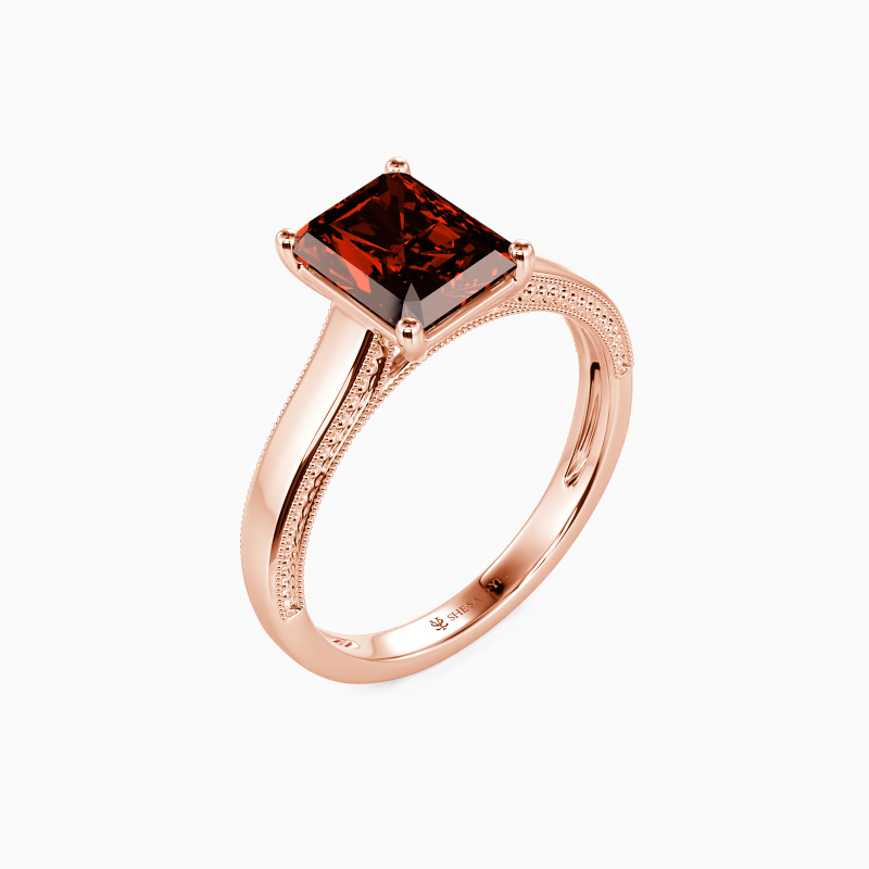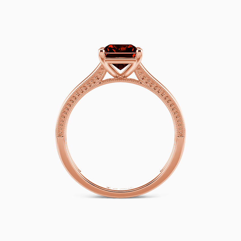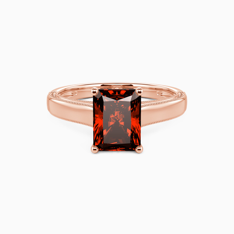 This solitaire ring displays a dazzling and sophisticated radiant-cut stone, flaunting effortless elegance in a timeless and alluring design. A single radiant-cut stone sits in four prongs, showcasing its breathtaking color and clarity. The polished shank is spattered with a petite milgrain pattern that ties the ring together perfectly. I promise to love you forever, every single day of forever.