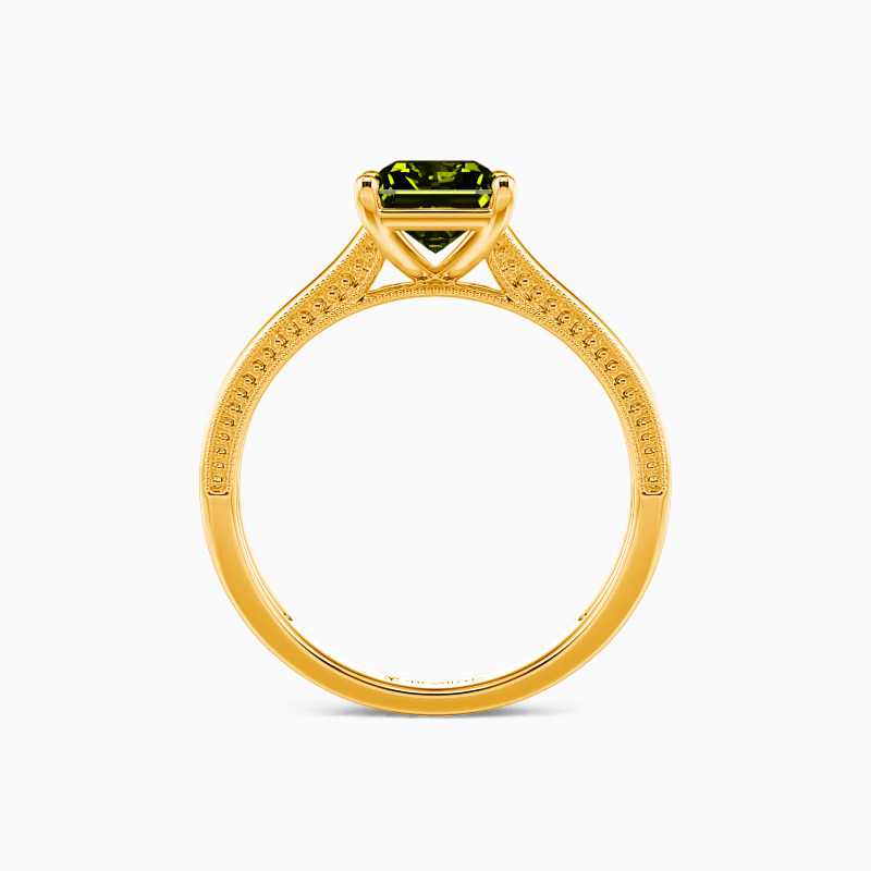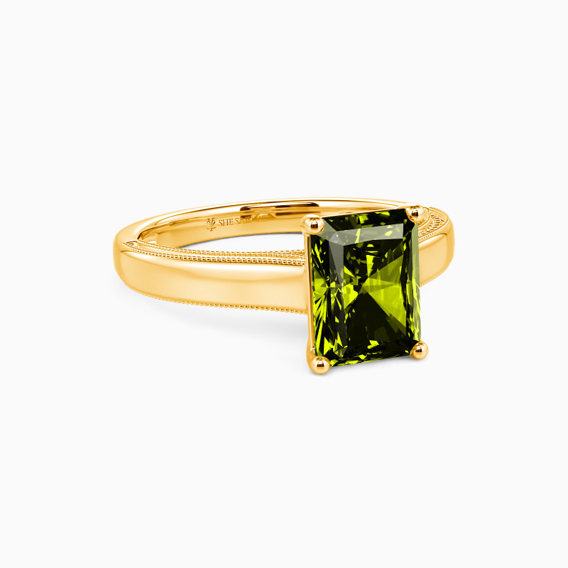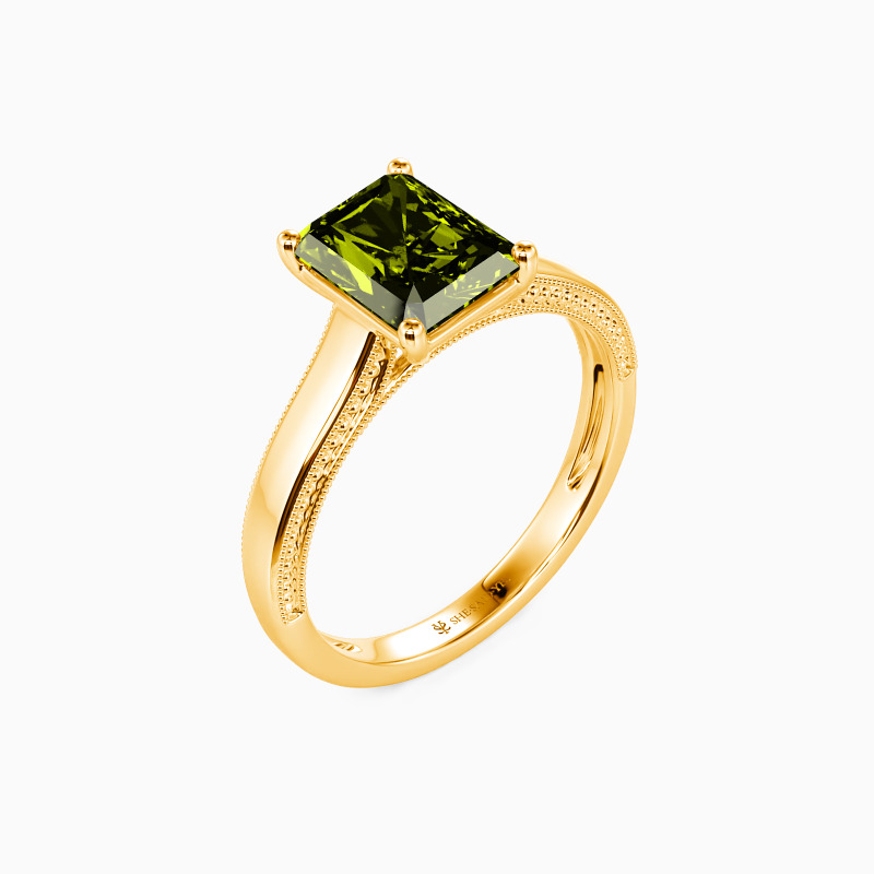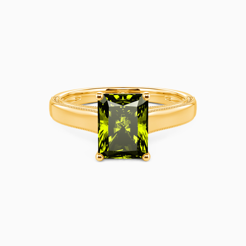 This solitaire ring displays a dazzling and sophisticated radiant-cut stone, flaunting effortless elegance in a timeless and alluring design. A single radiant-cut stone sits in four prongs, showcasing its breathtaking color and clarity. The polished shank is spattered with a petite milgrain pattern that ties the ring together perfectly. I promise to love you forever, every single day of forever.