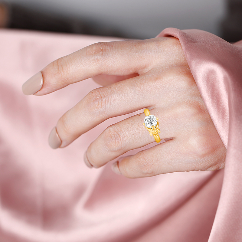 Featuring an adorable Spaniel hugging the scintillating round-cut center stone set in four prongs, this ring showcases perfectly a sweet vibe of love towards life and animals. Such a great gift to please your lover and yourself.